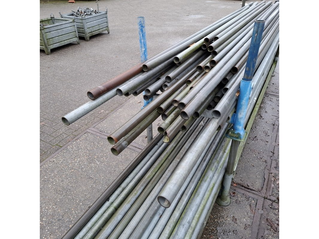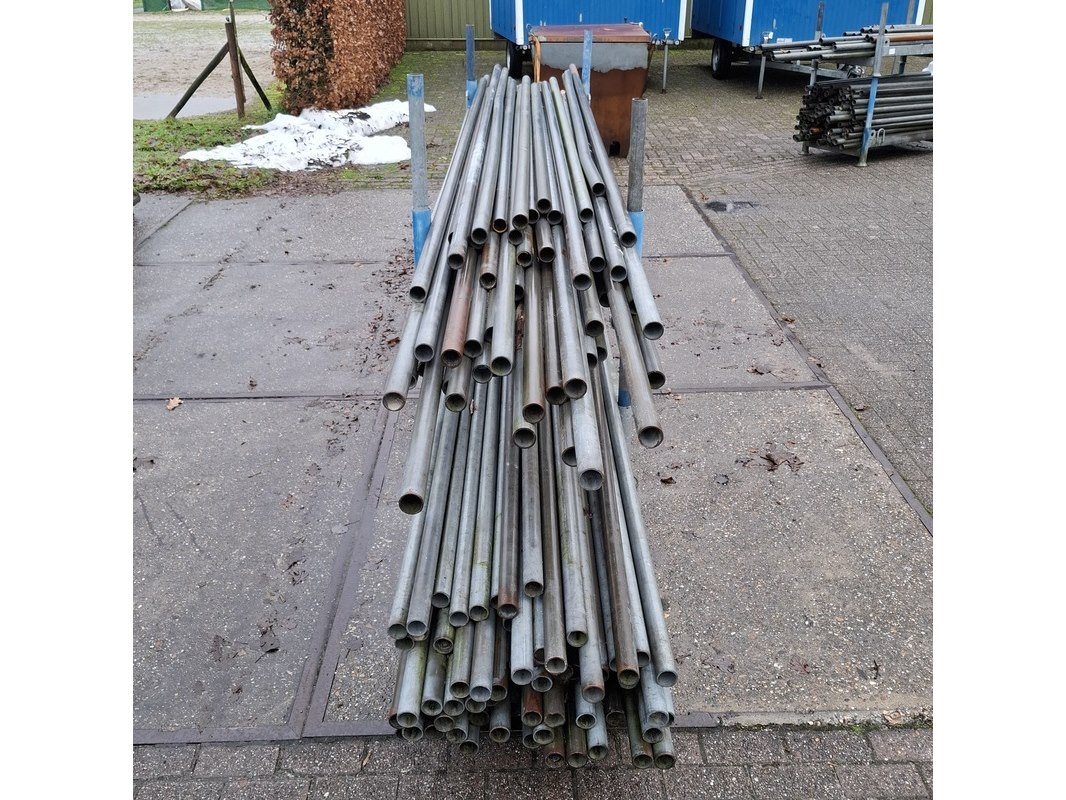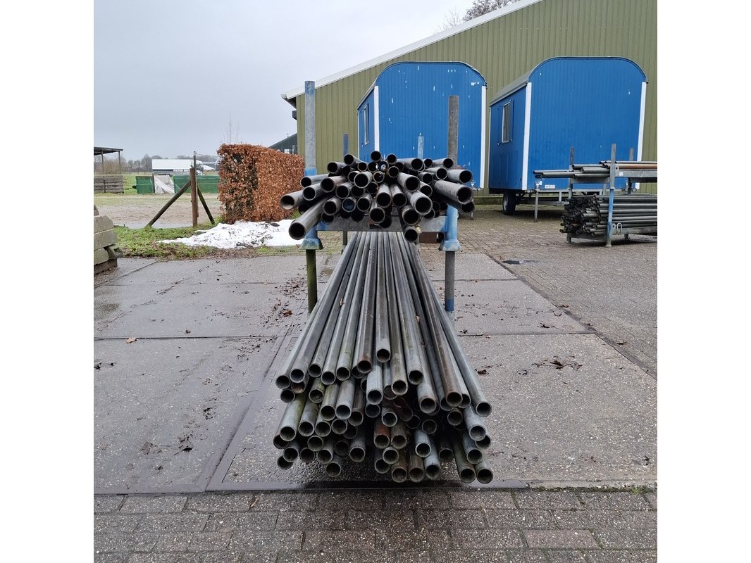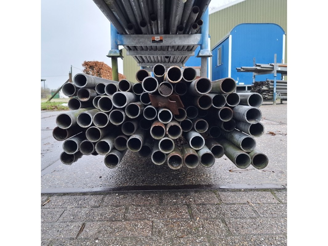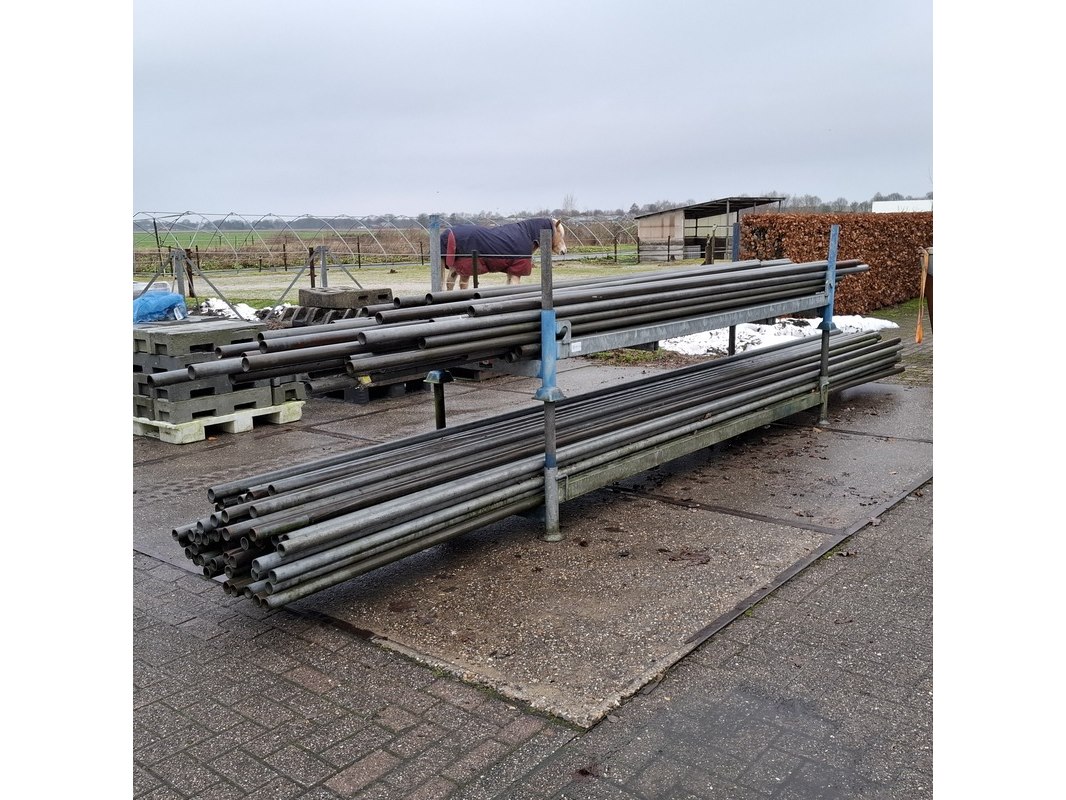 Product: Partij steigerbuizen op 2x transportbok Afmeting: max. 6m, min. 2,5m Conditie: gebruikt