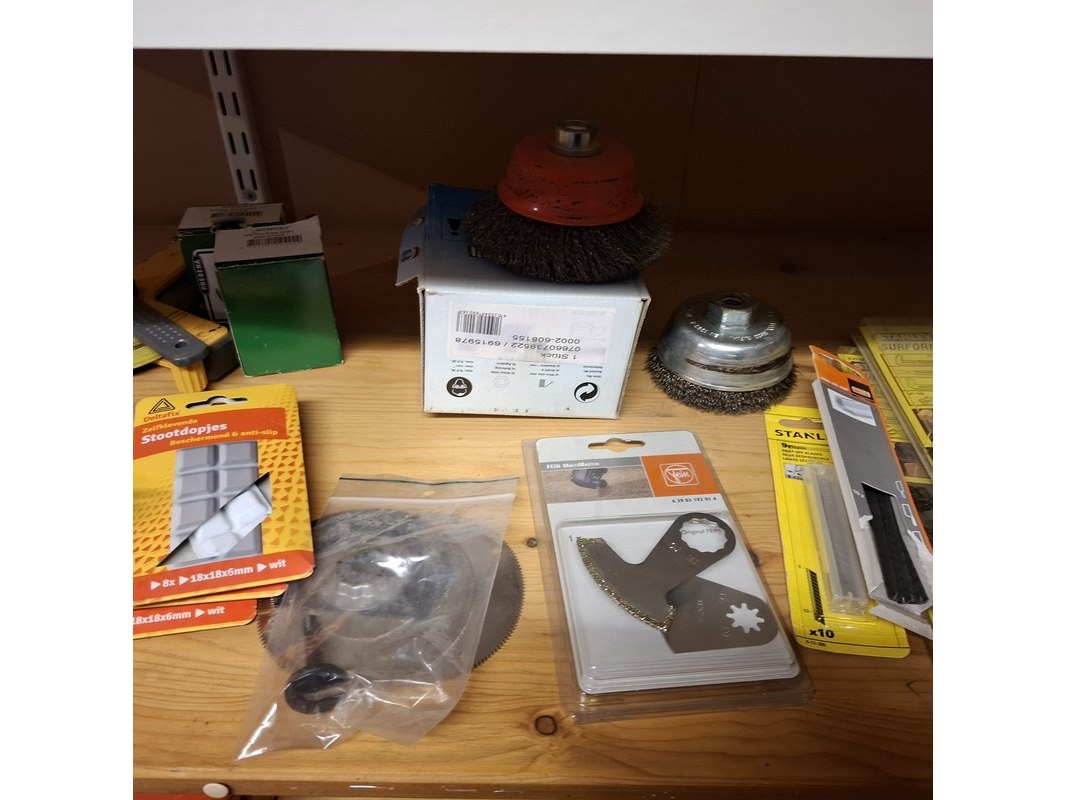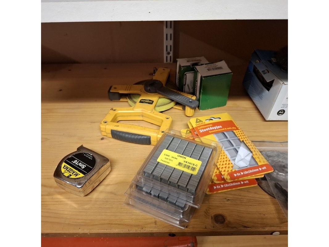 Product: Partij diversen Specificaties: Bestaande uit: o.a. valbeveiliging, stofmaskers met filter, bouwstofzuiger zakken Nilfisk, sleepkabel, 2x waterslang ø 1/2" 25 meter, stofdeur met a rits, nieten, kitspuit, divers bouwgereedschap, diverse aanhanger benodigdheden etc.