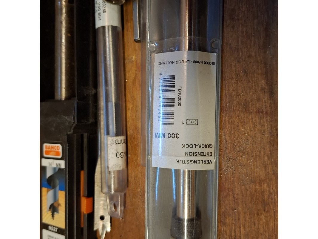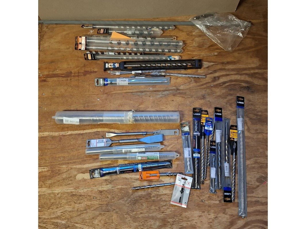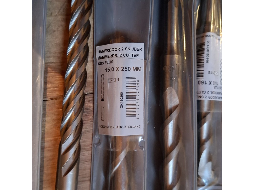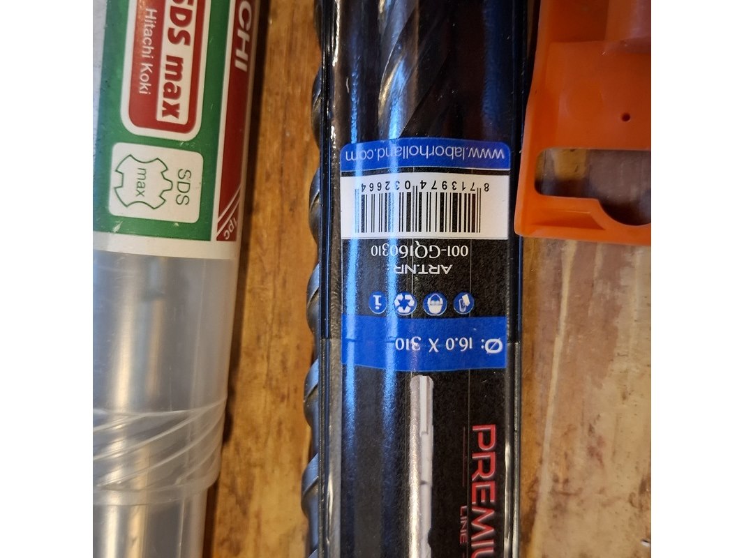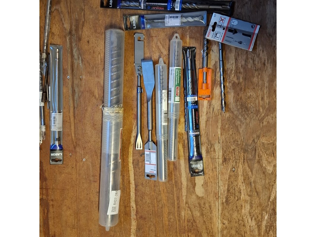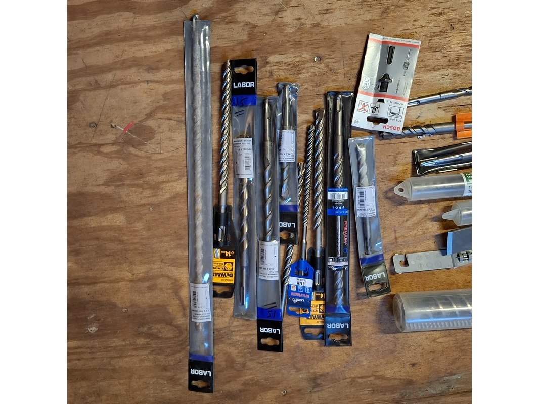 Merk: o.a. Labor, DeWalt en Bahco Product: hout en beton boren Specificaties: Diverse soorten en maten, waaronder (beton) 15.0x160 mm, 16.0x310 mm, 15.0x250 mm en 12.0x390/450 mm. (hout) 20.00x460 mm, 8.0x230 mm en 28.00x460 mm.