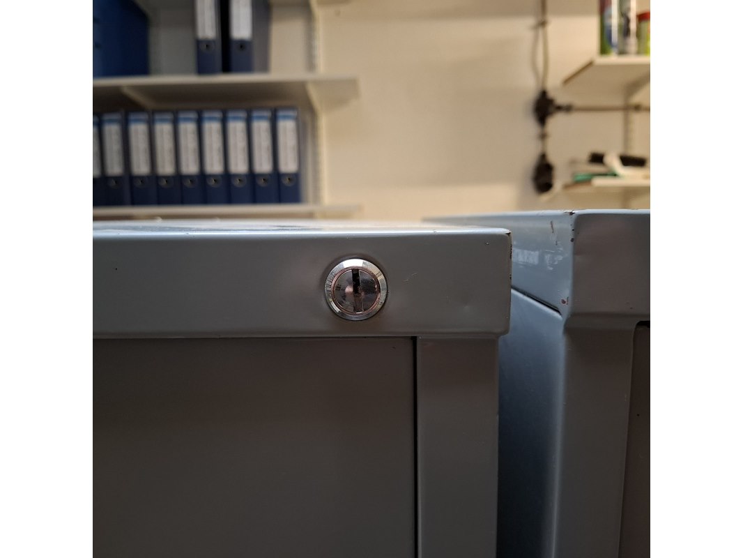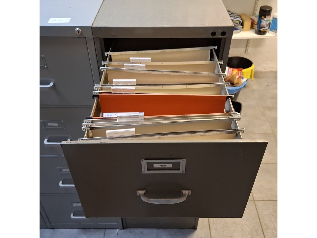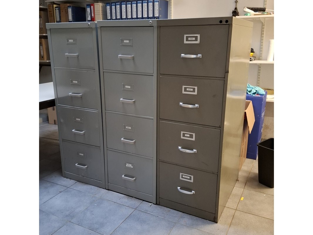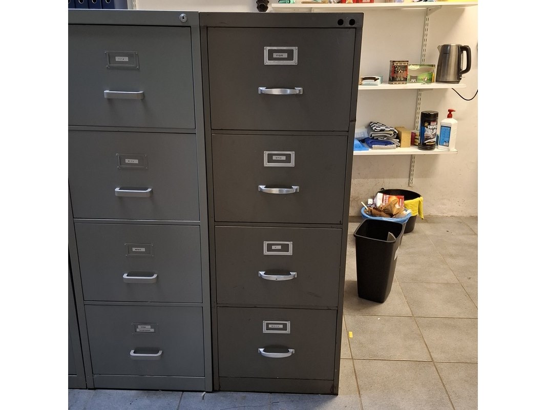 Product: Dossierkast met 4 laden Conditie: gebruikt Specificaties: 1x hxbxd ca. 135x49.5x71 cm, 1x ca. 135x48x63.5, 1x ca. 135x48x73 cm.