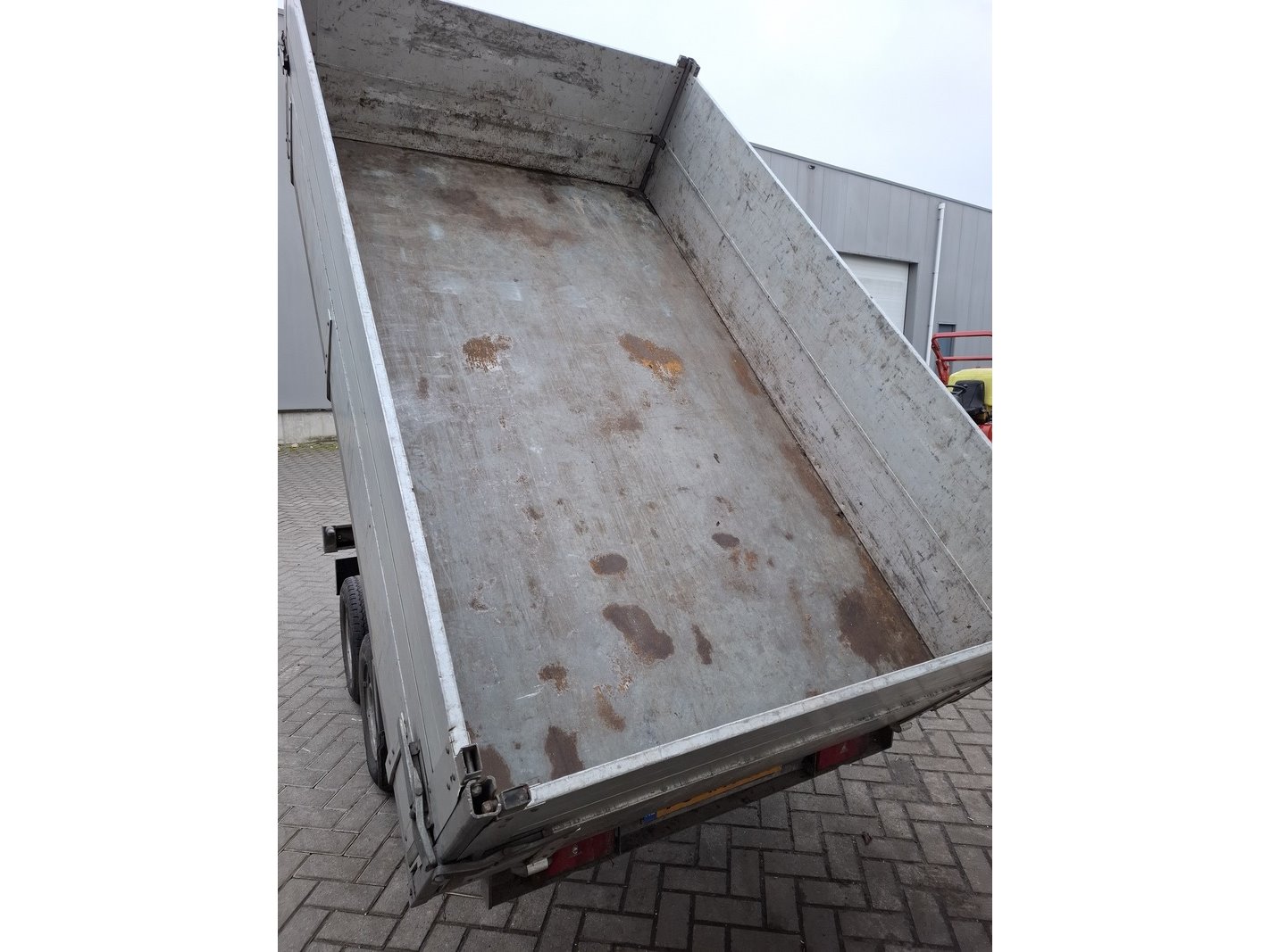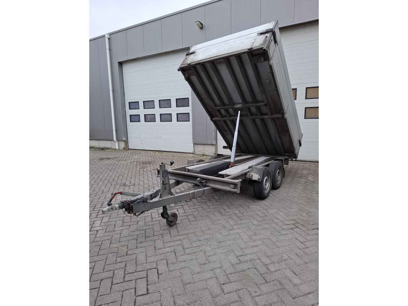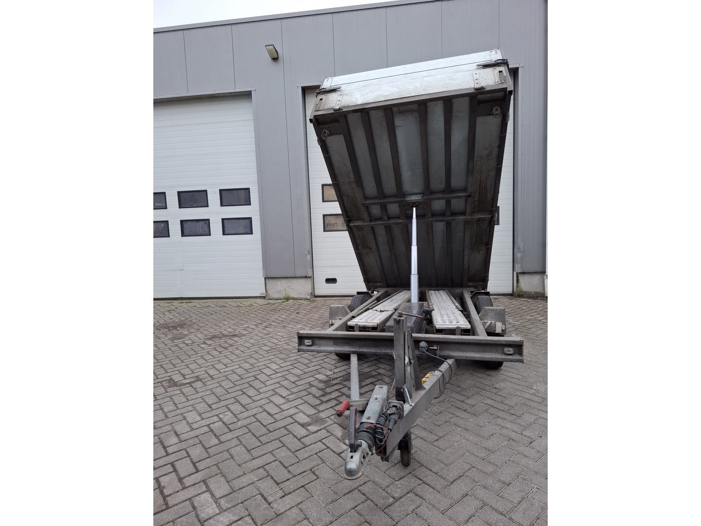 Merk: Ansems Product: Kipper, 3 zijdig kiepend Afmeting: bakmaat lxbxh ca 305x180x65cm BouwJaar: 2014 Specificaties: kenteken: 75-WH-RV, dubbele aluminium schotten, stalen bodem, oprijplaten