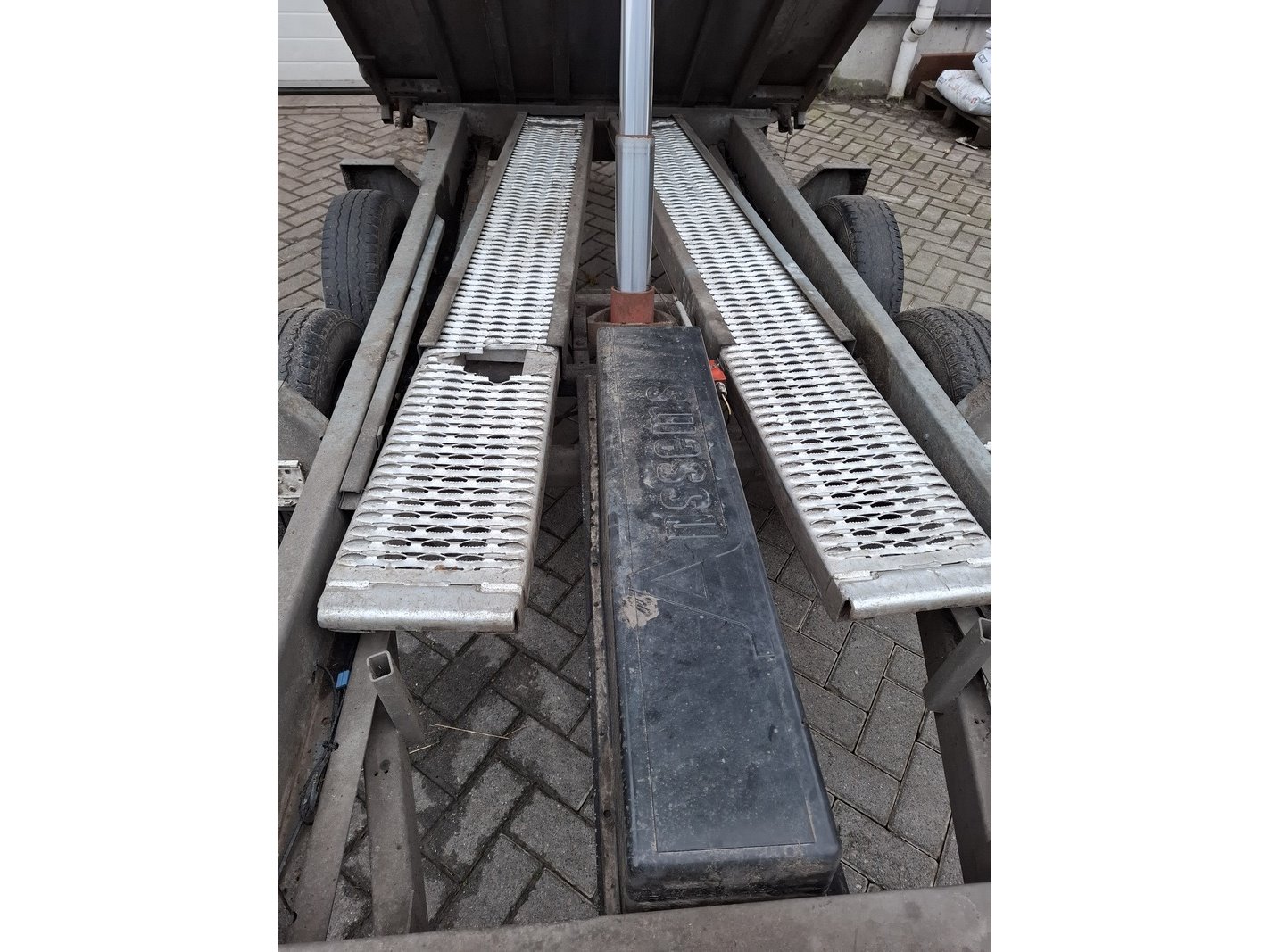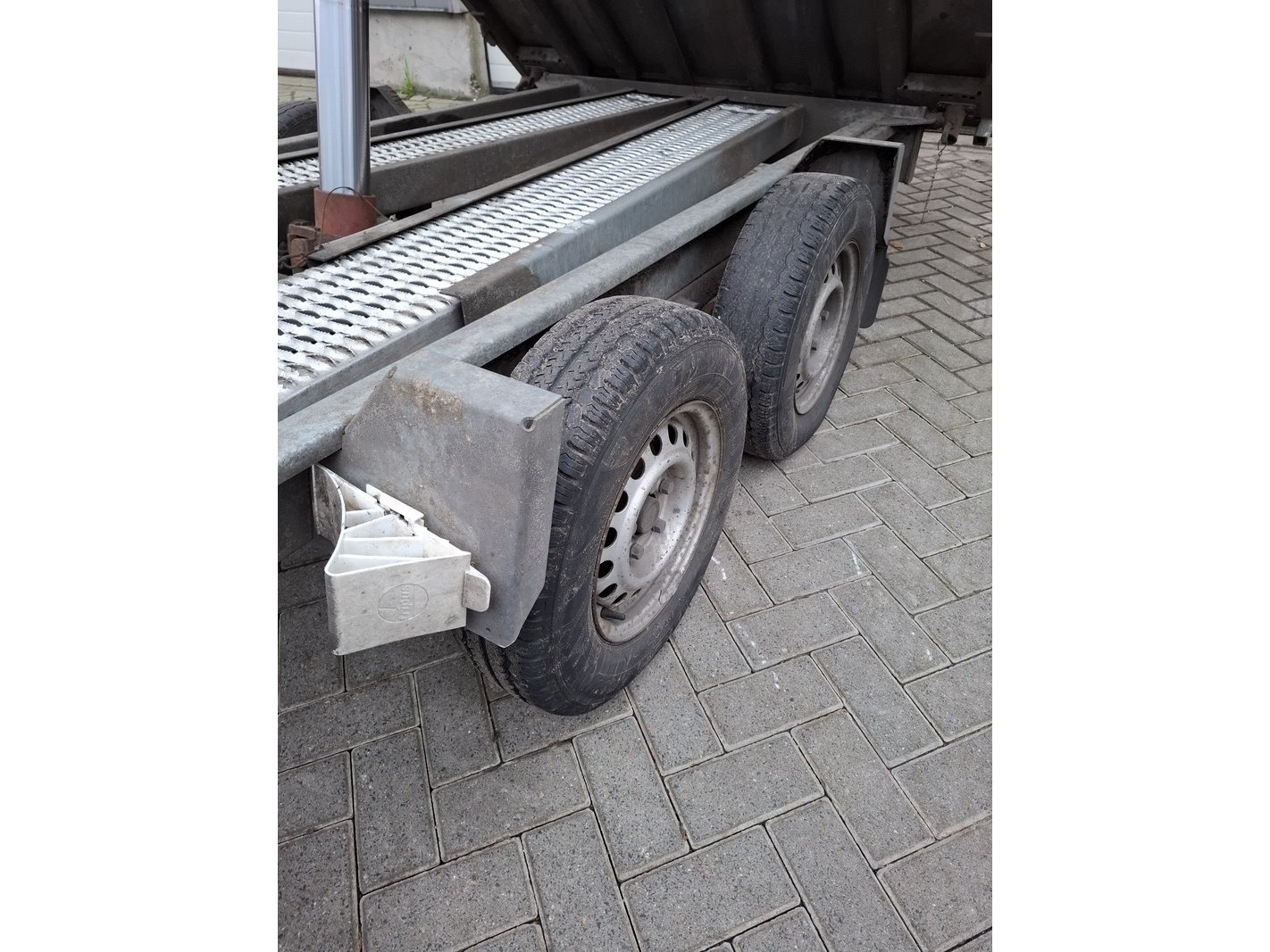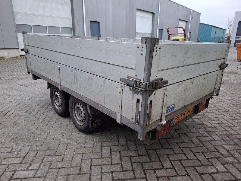 Merk: Ansems Product: Kipper, 3 zijdig kiepend Afmeting: bakmaat lxbxh ca 305x180x65cm BouwJaar: 2014 Specificaties: kenteken: 75-WH-RV, dubbele aluminium schotten, stalen bodem, oprijplaten