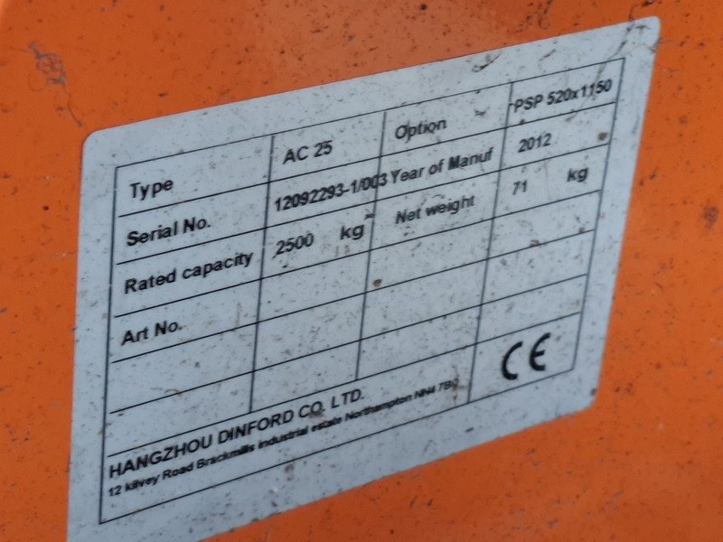 Merk: Doosan Product: Palletwagen Specificaties: max 2500kg, lepellengte ca 110cm
