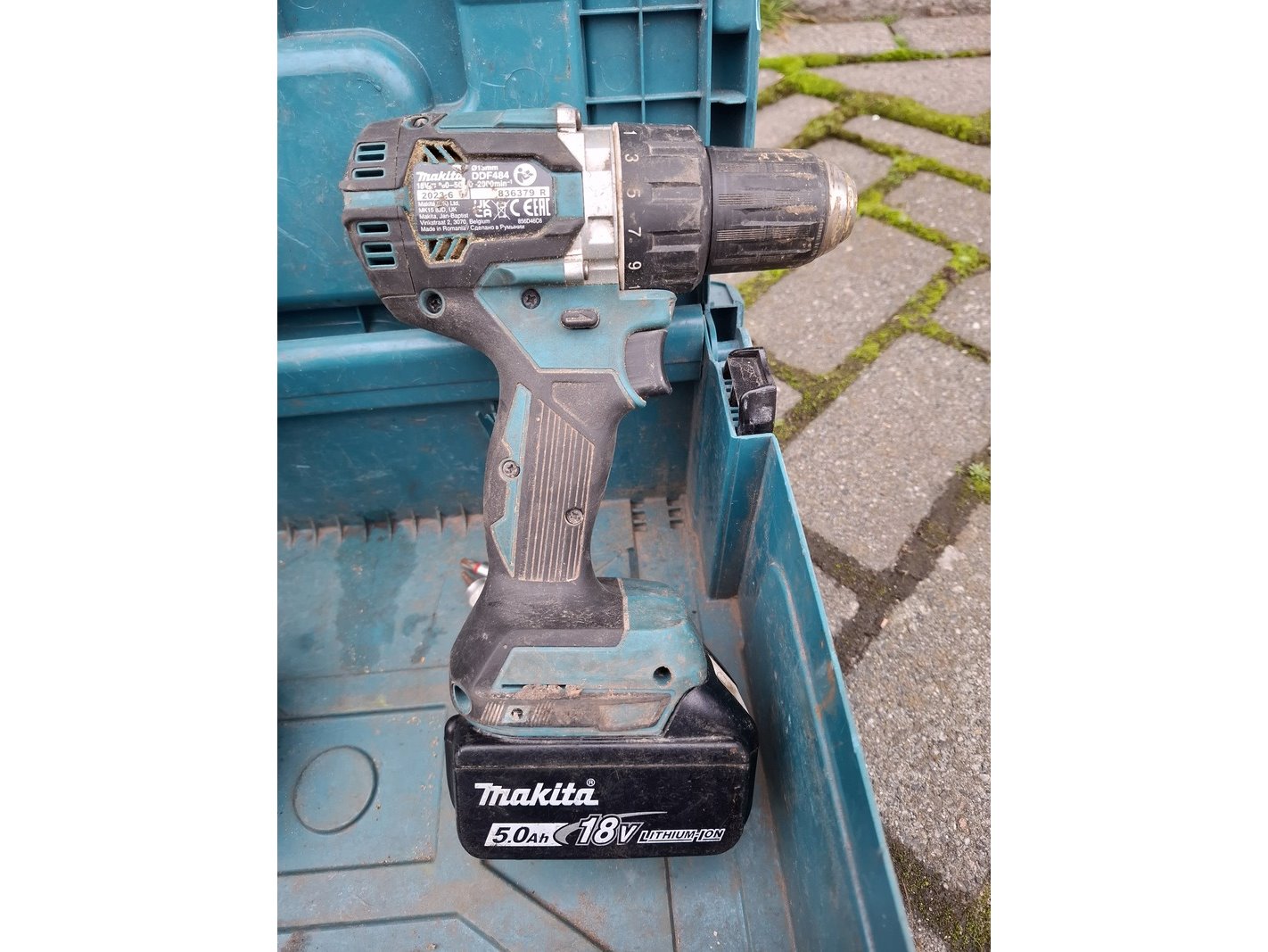 Merk: Makita Product: Accu boormachine en slagschroevendraaier Specificaties: incl. 2x accu 18V, 5Ah en lader