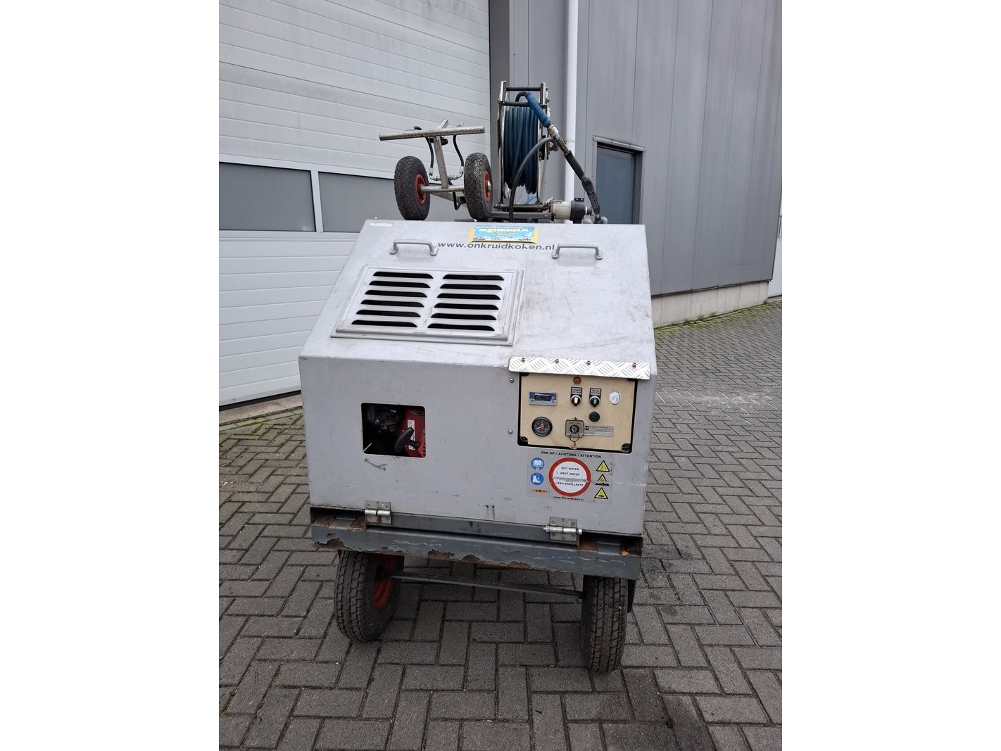 Merk: Empas Product: Onkruidstomer Conditie: Gebruikt Specificaties: Honda benzinemotor, verrijdbaar onderstel, 12 liter per minuut, watertemperatuur 102 graden, met veerhaspel, 20 meter slang, werklans en vloeikop