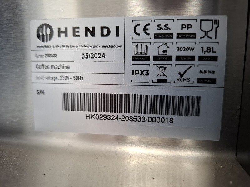 Merk: Hendi Product: Koffiezet apparaat BouwJaar: 2024 Specificaties: 230V