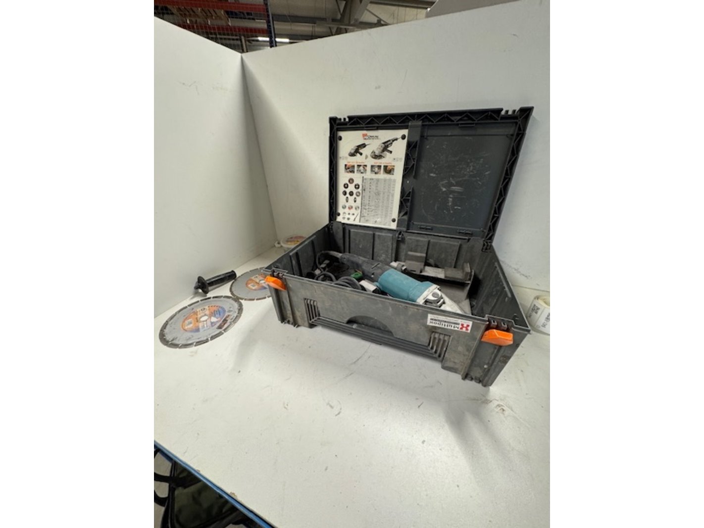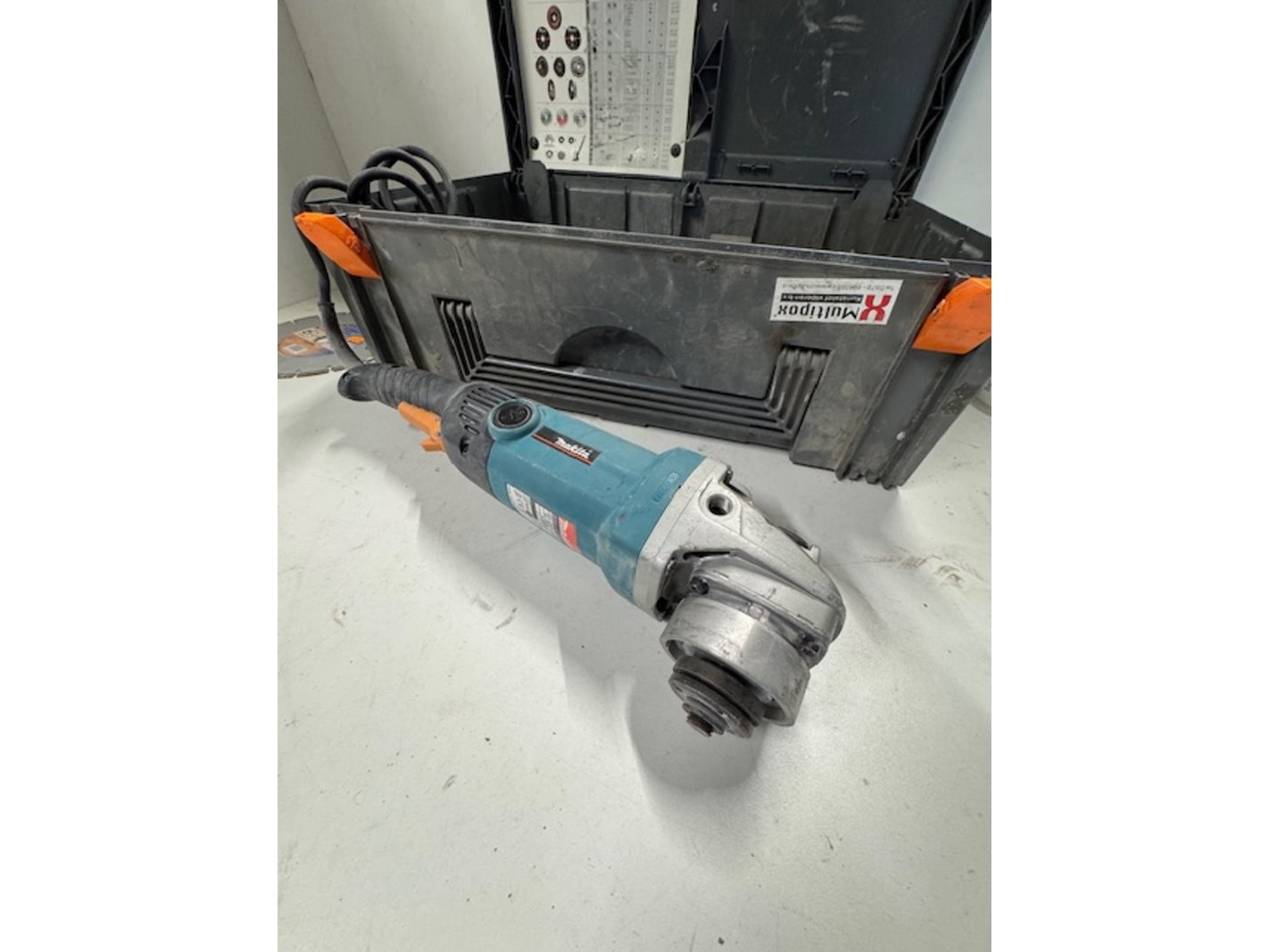 Merk: Makita Product: Haakse slijper Afmeting: bxdxh ca. 60x40x22cm Conditie: gebruikt Specificaties: 2000w, met Protool koffer