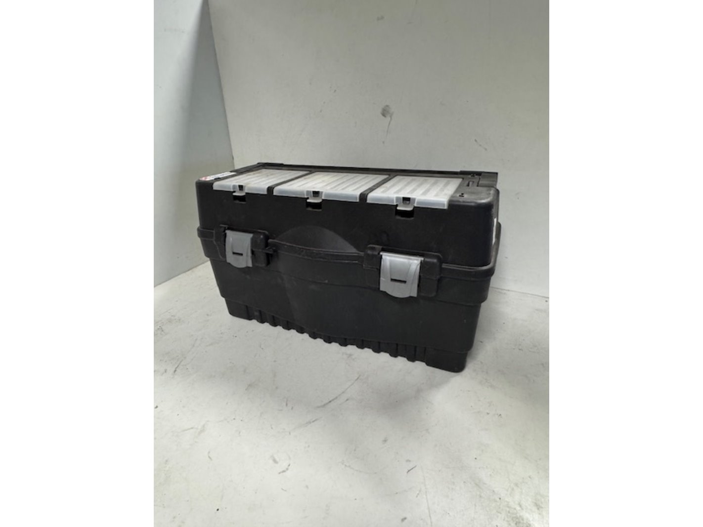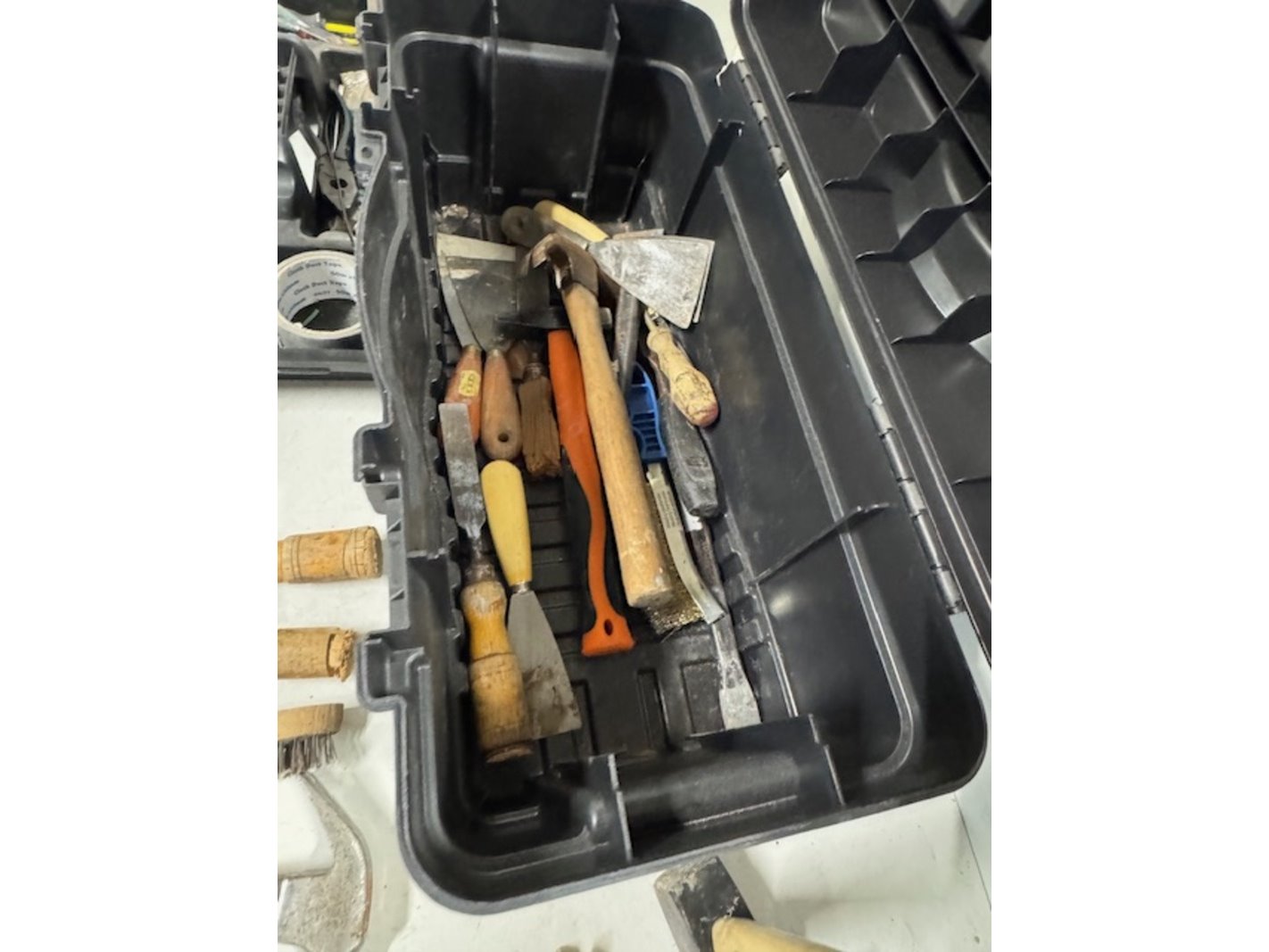 Product: Gereedschapskist met handgereedschap Afmeting: bxdxh ca. 60x26x30cm Conditie: gebruikt Specificaties: o.a.: hamers; beitels; borstels