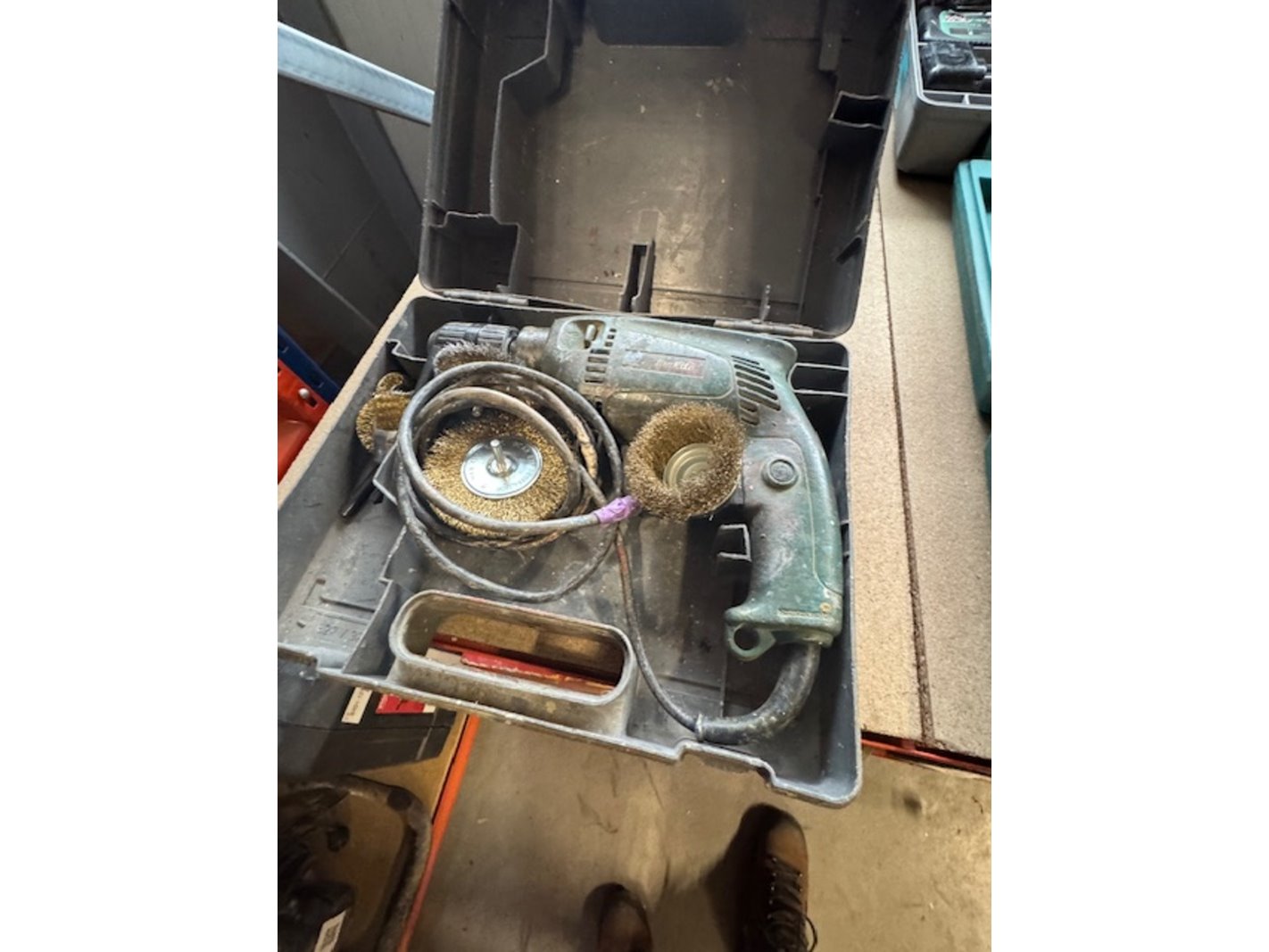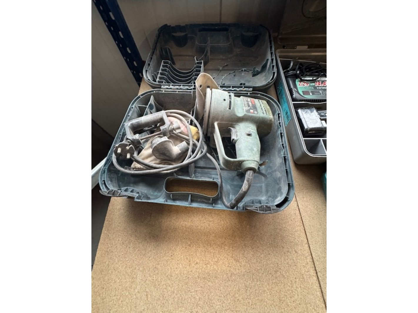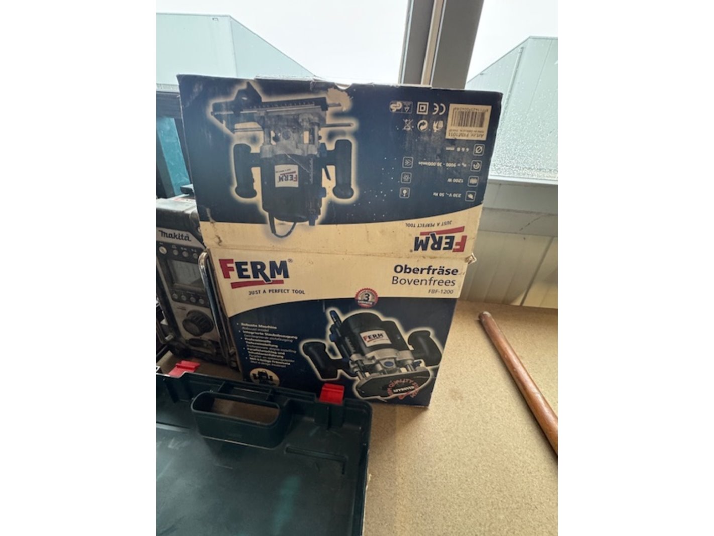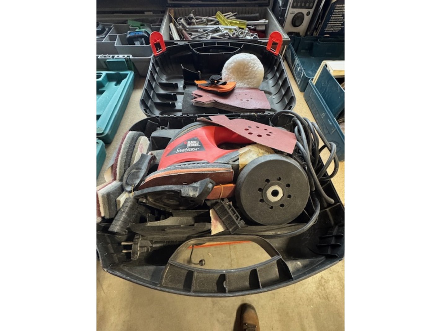 Product: Partij elektrisch gereedschap Conditie: gebruikt Specificaties: o.a.: föhn Bosch bovenfrees; Ferm; gereedschapskoffer met handgereedschap; 2x schuurmachine Bosch en Black&Decker; 2x accuboormachine Makita & Hitachi; Radio Makita.