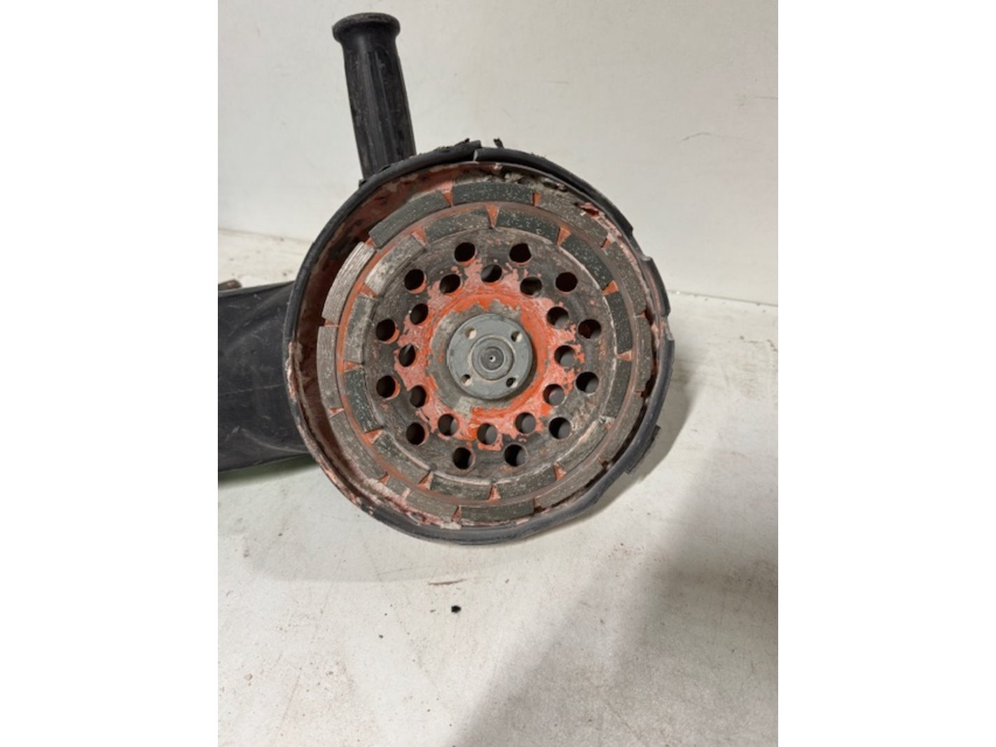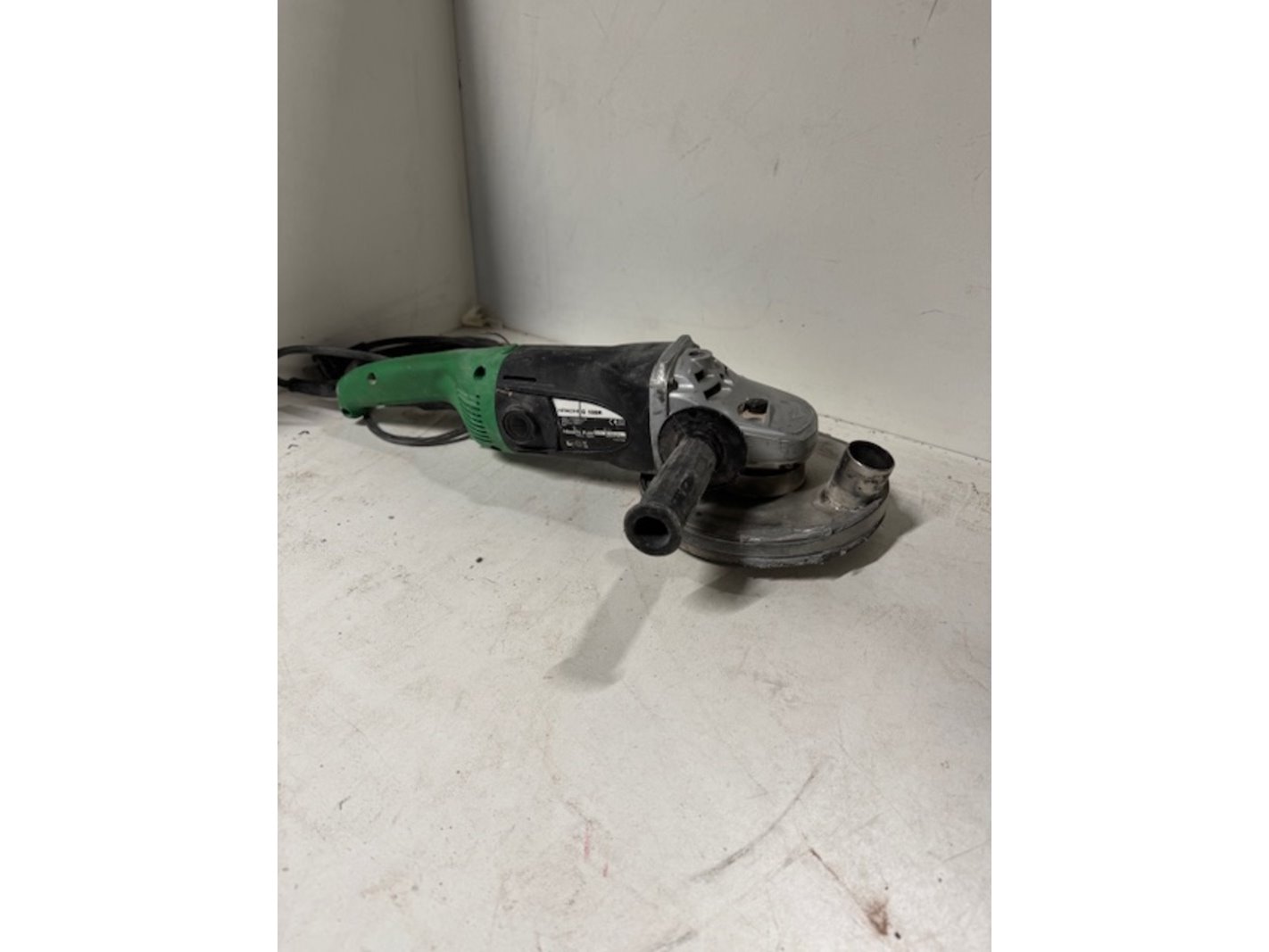 Merk: Hitachi Kok Product: Haakse slijper Afmeting: bxdxh ca. 63x28x22cm Conditie: gebruikt Specificaties: 2000watt, met houten kist, met betonschijf