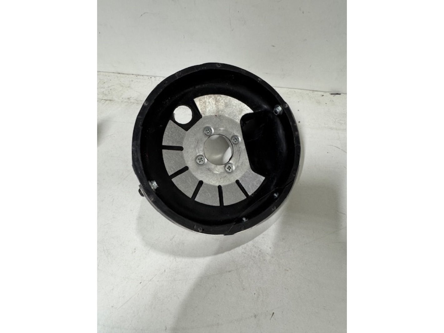 Merk: US Saws Product: Afzuigkap haakse slijper Materiaal: rubber/rvs Afmeting: diameter 22cm Conditie: nieuw