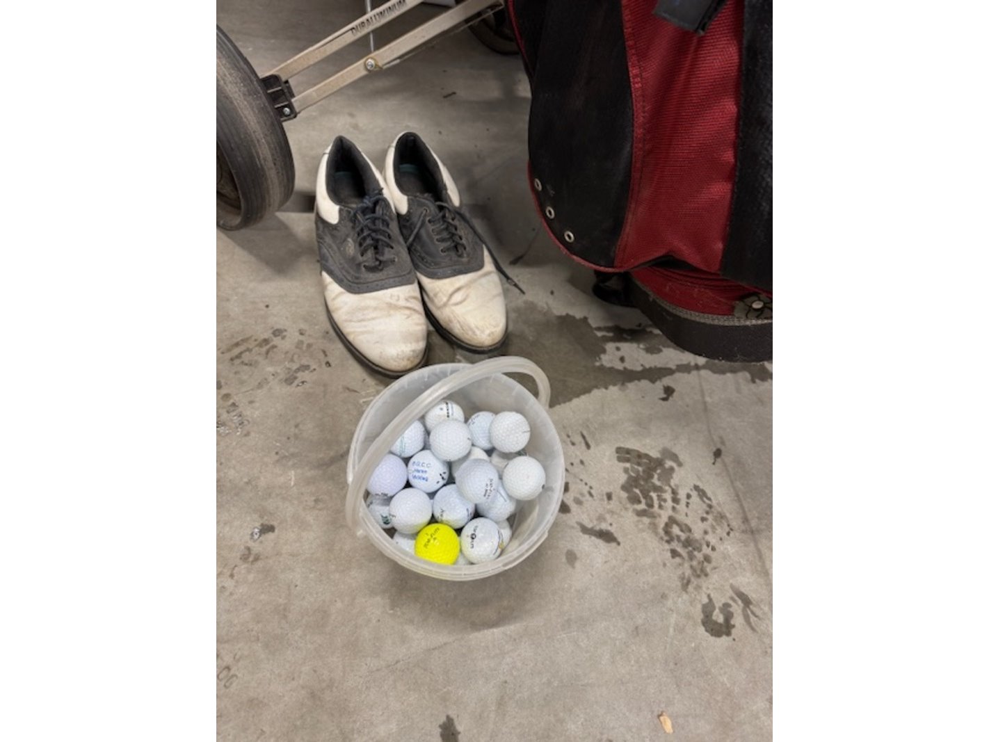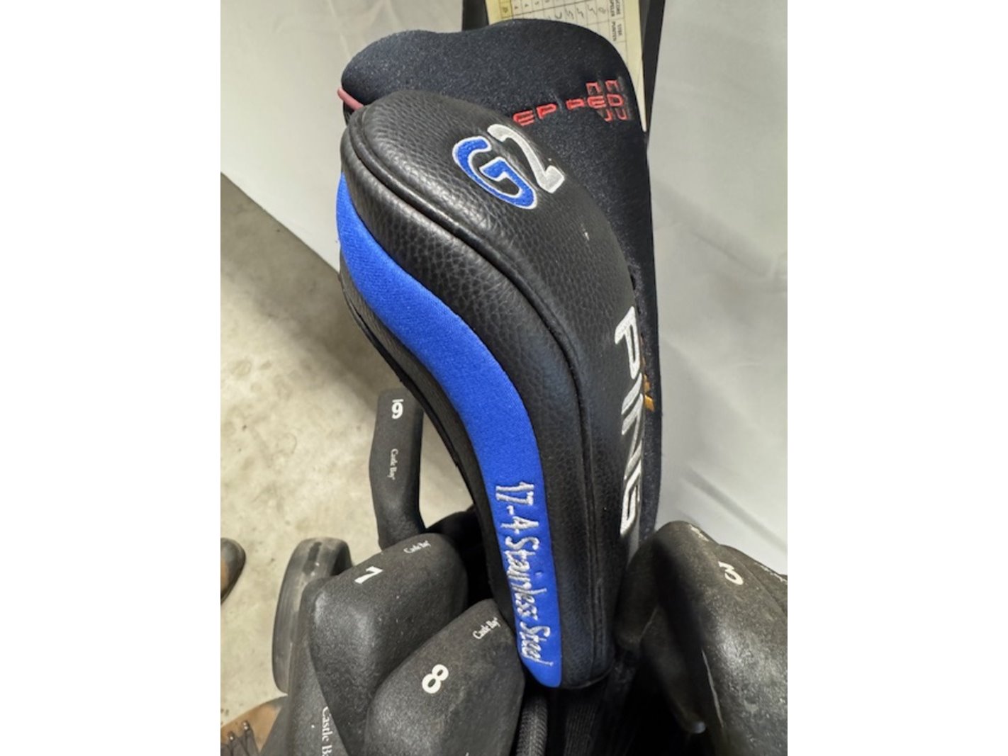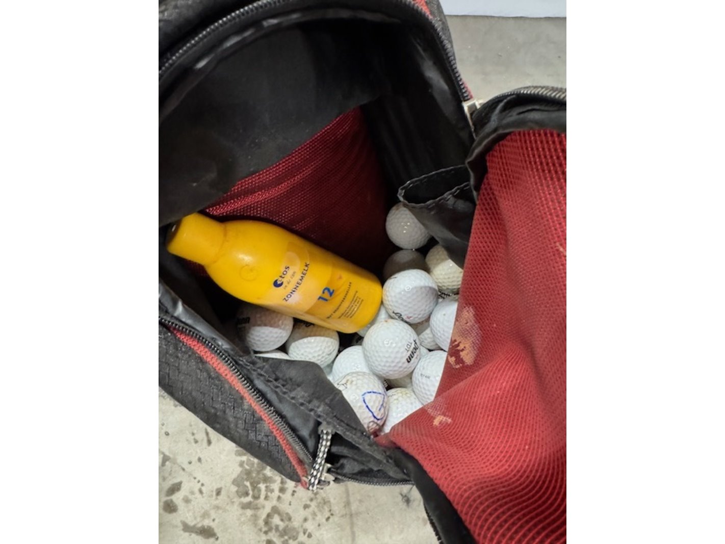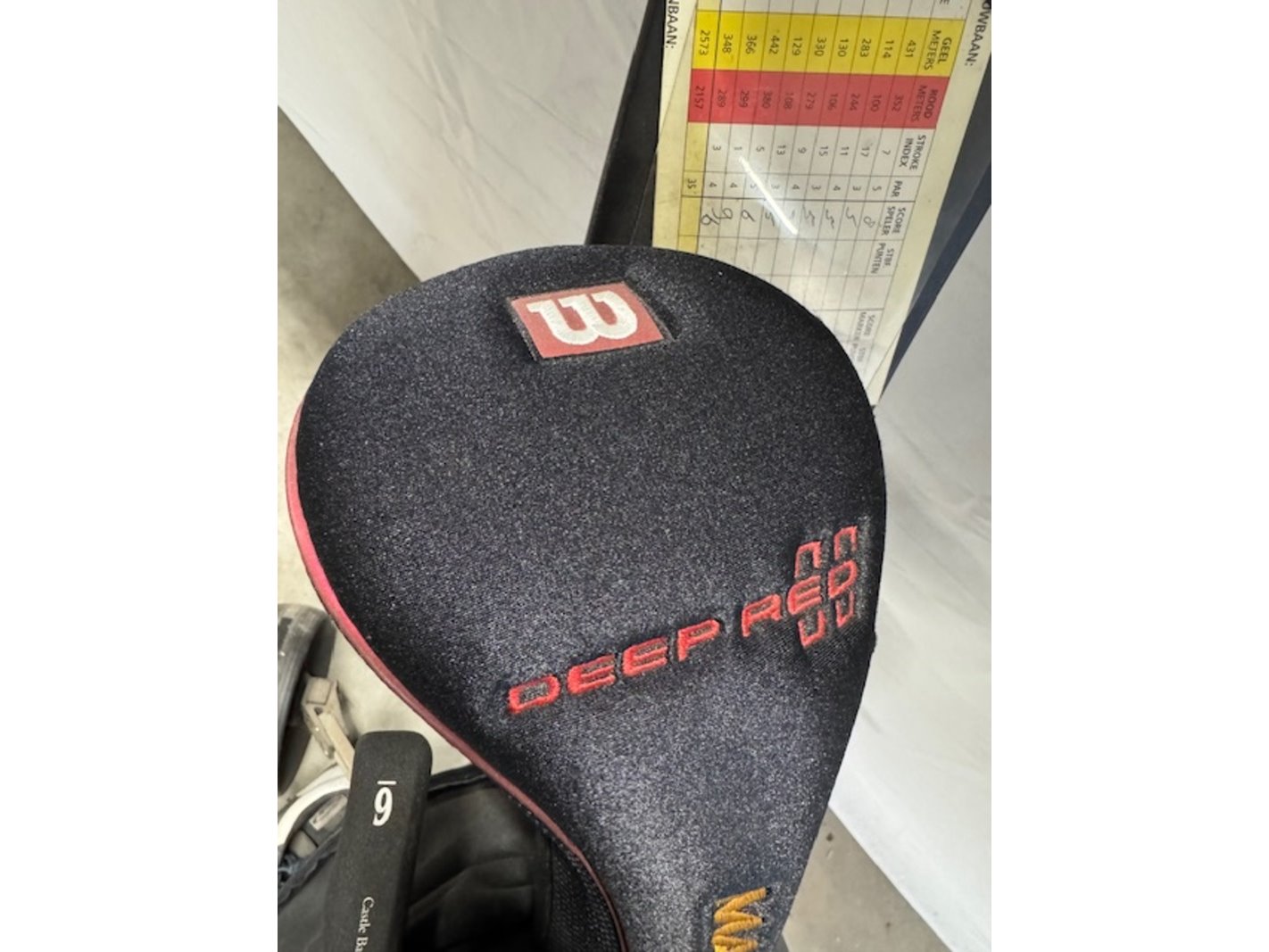 Product: Golftas met clubs Conditie: gebruikt Specificaties: 13-delig, golfcaddy