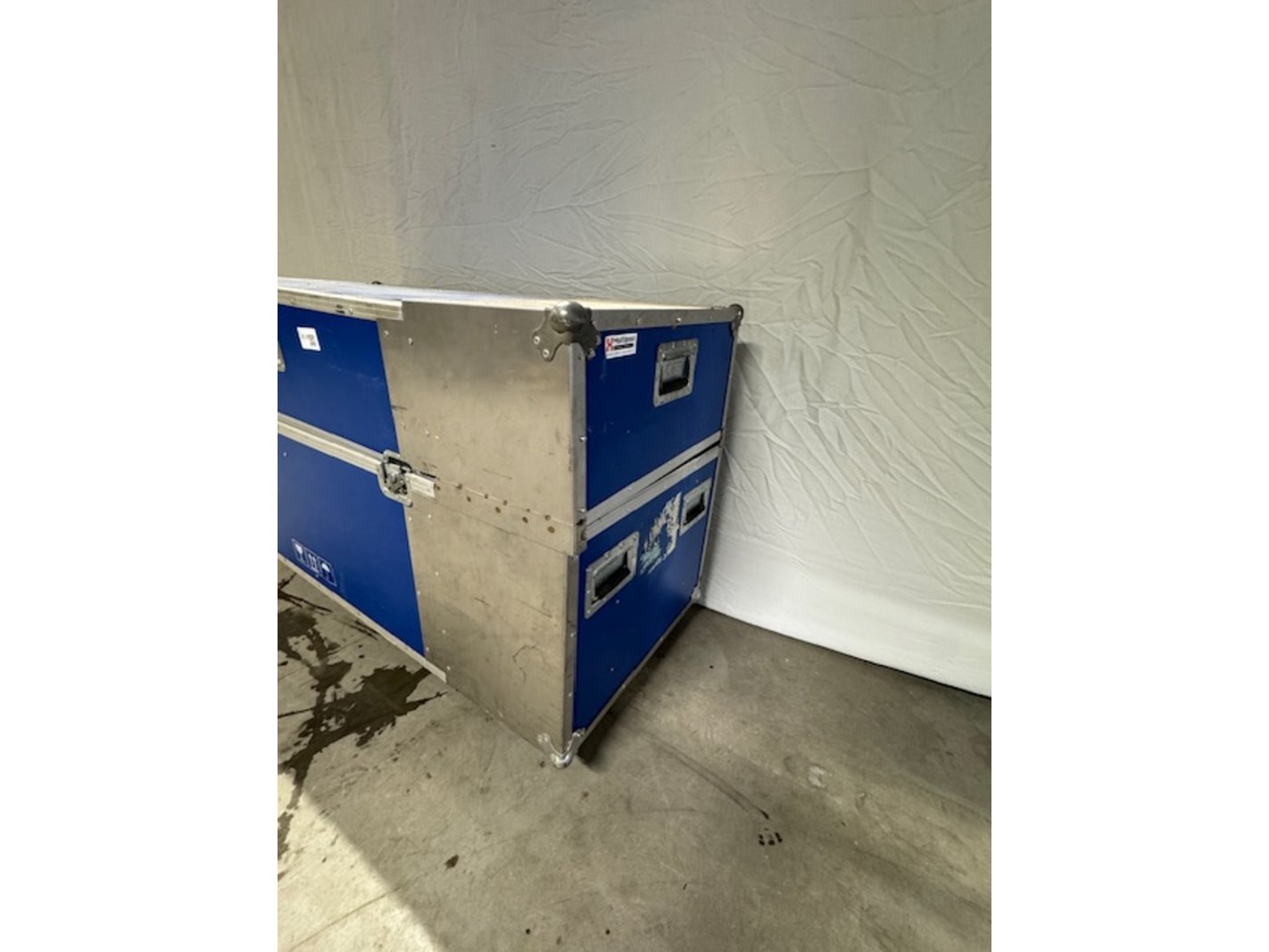 Product: Flightcase Kleur: blauw Afmeting: bxdxh ca. 146x63x90cm Conditie: gebruikt