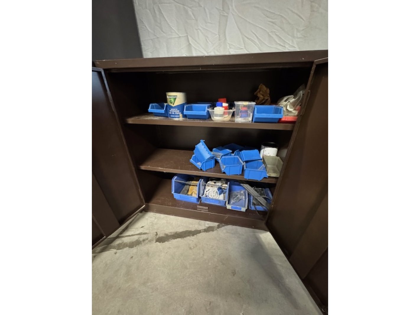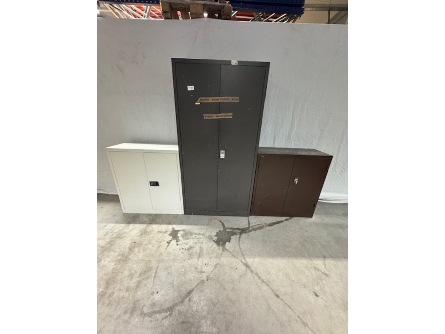 Product: Magazijnkast Kleur: bruin en grijs Materiaal: metaal Conditie: gebruikt