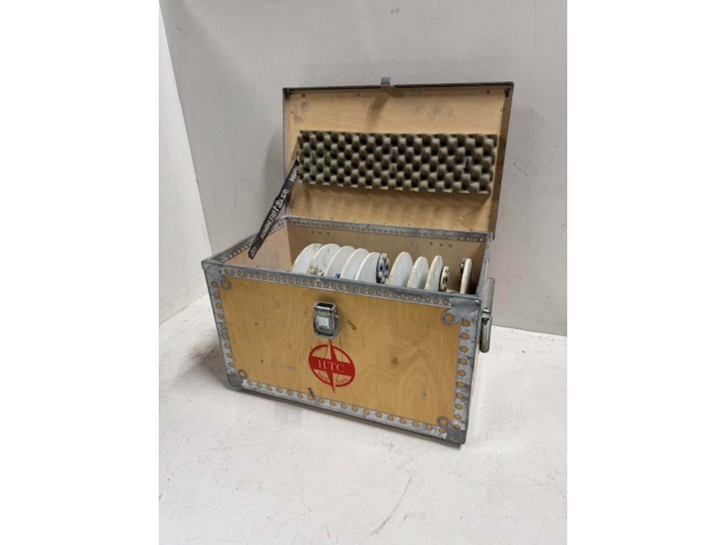 Merk: HTC Product: Kist met schuurpads Afmeting: bxdxh ca. 42x26x28cm Conditie: gebruikt Specificaties: 9 stuks