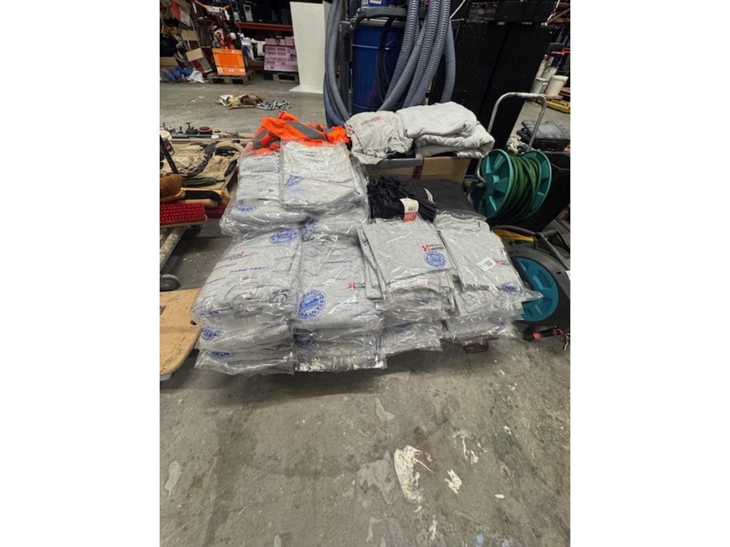 Merk: Havep en Fruit & loom Product: Partij werkkleding Specificaties: o.a.. Polo's, sweaters en werkbroeken, grotendeels alles nieuw met bedrukking