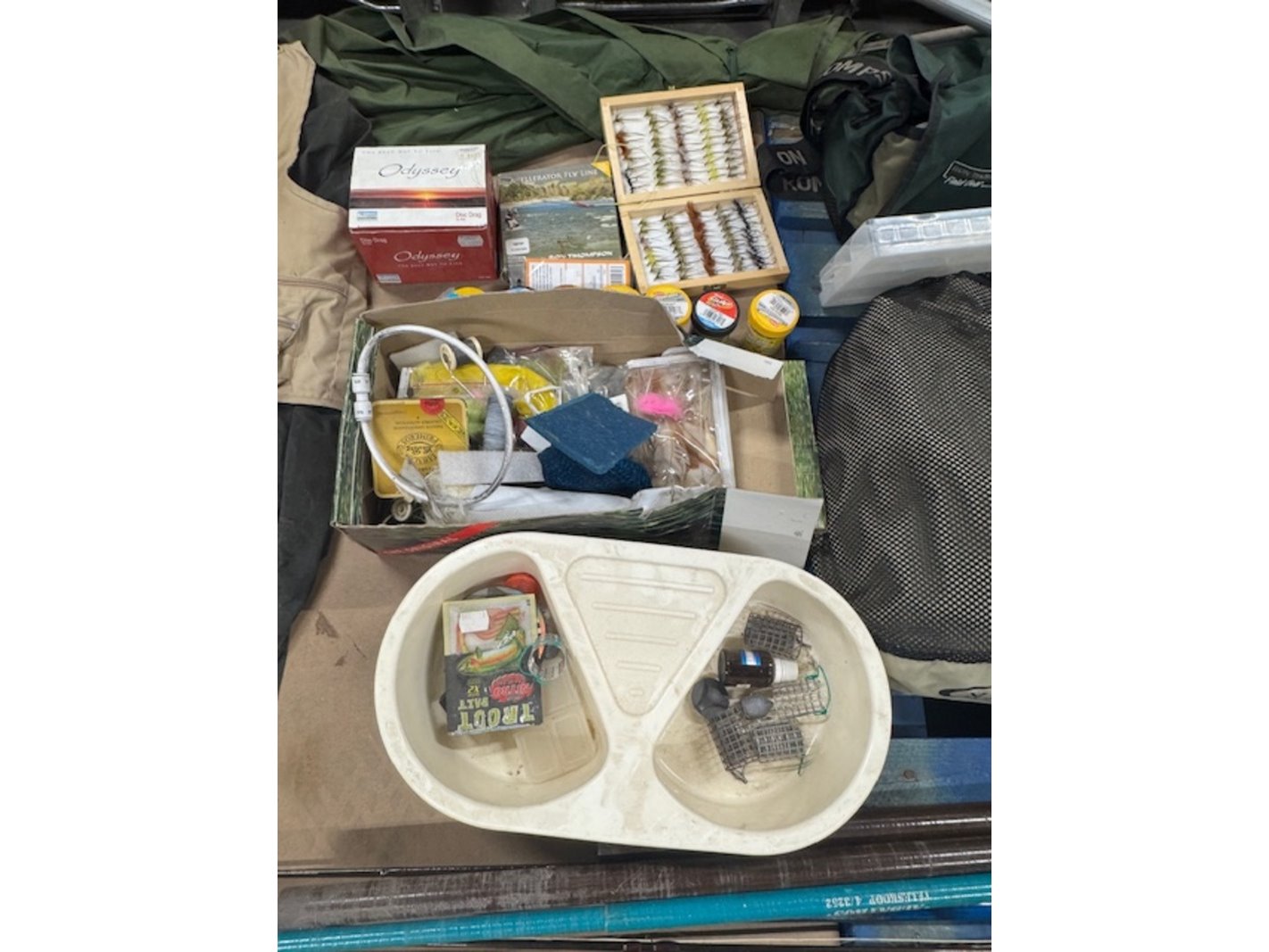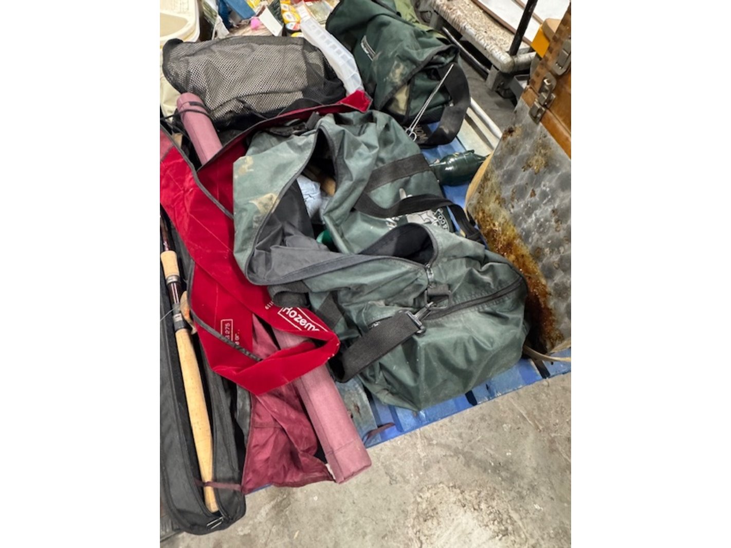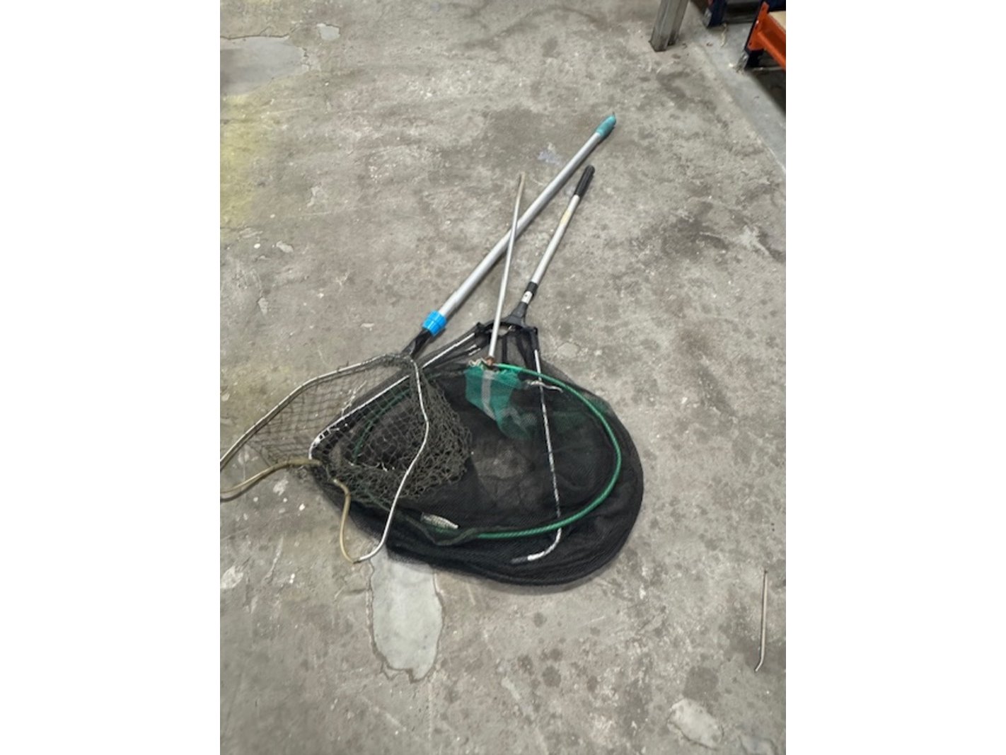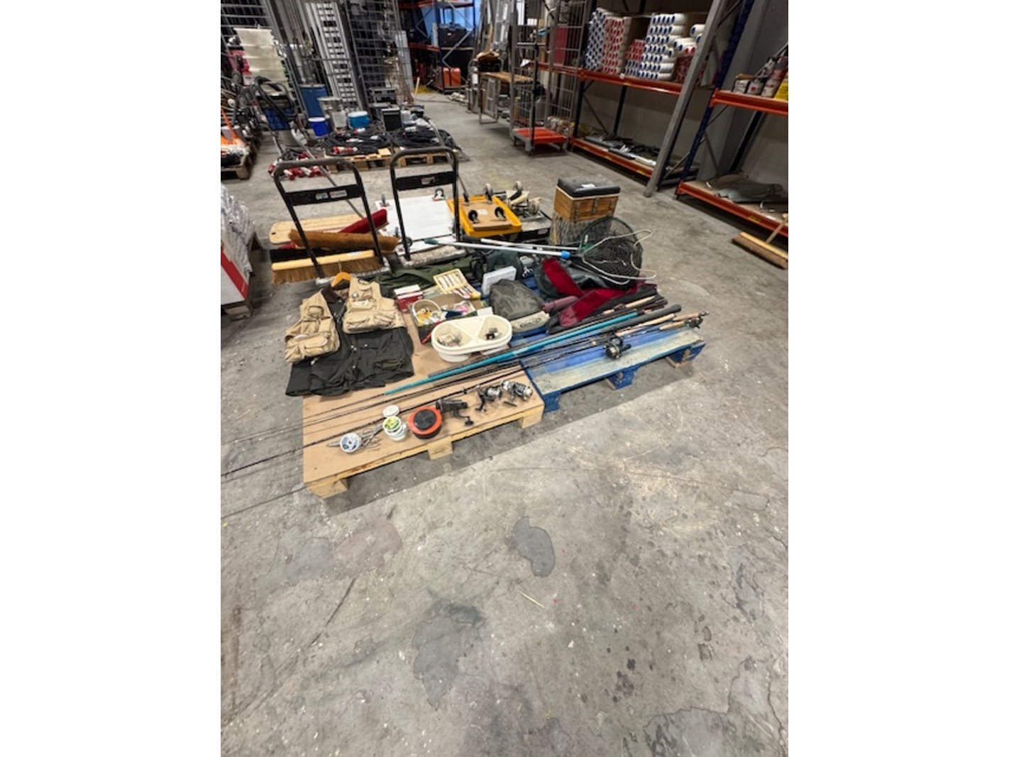 Product: Partij hengels en hengelsport artikelen Conditie: gebruikt Specificaties: o.a. hengels, netten, kleding, dobbers, parasol, etc.
