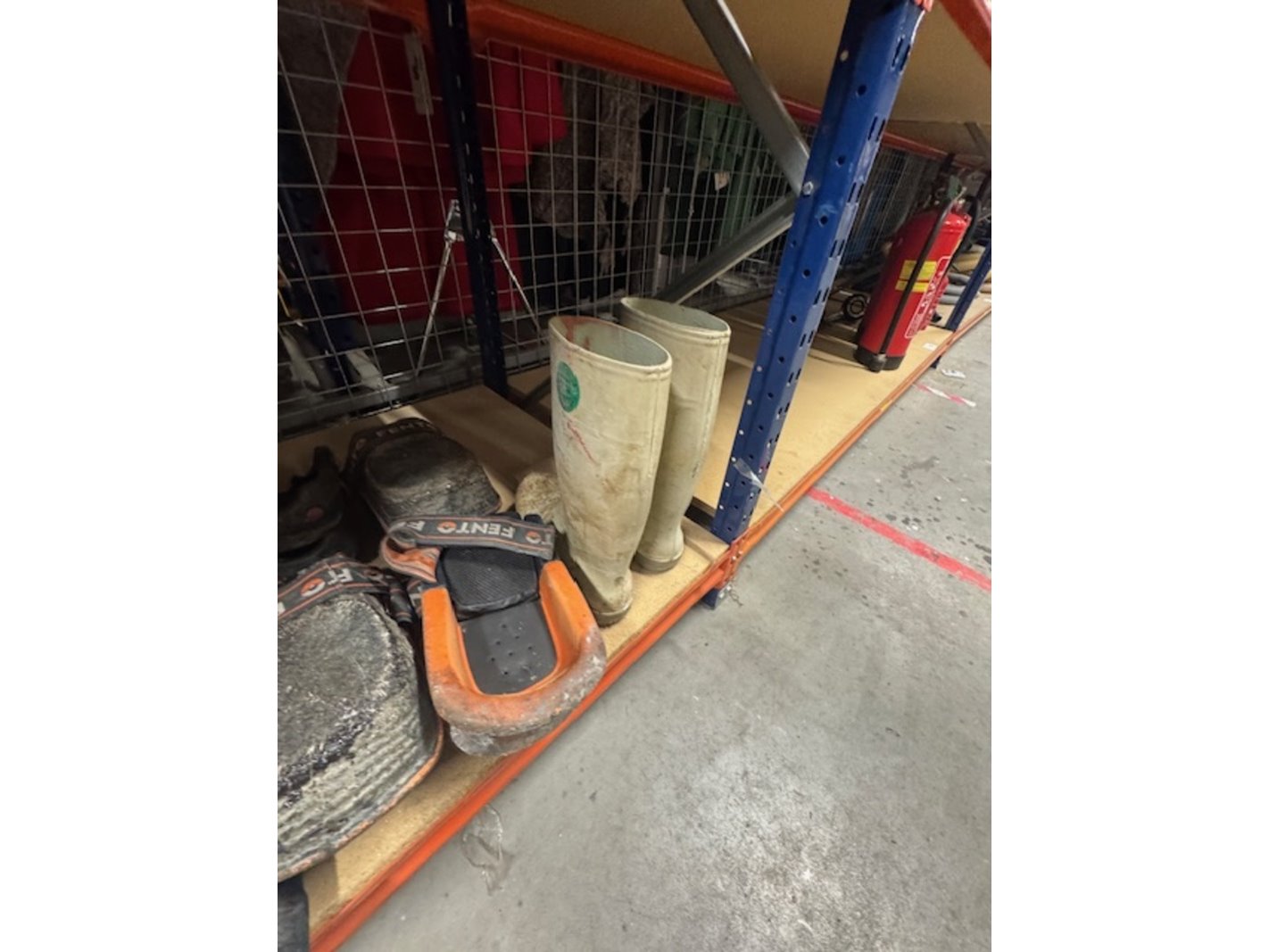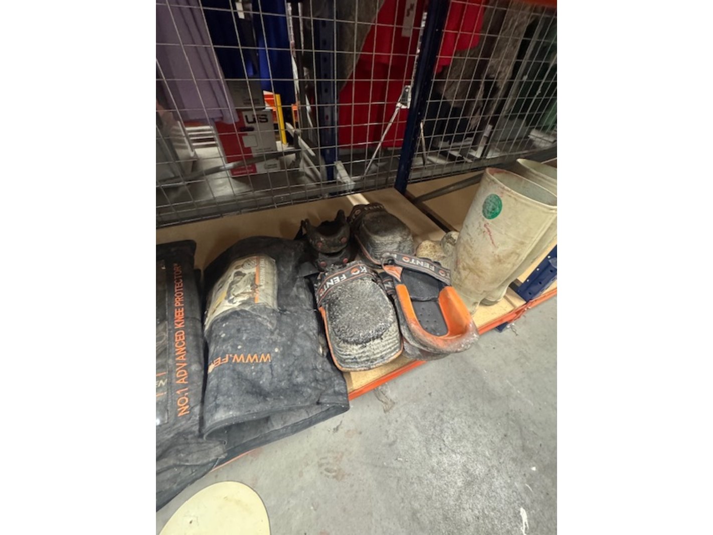 Merk: o.a. Fento Product: Partij kniebeschermers en spijkerschoenen
