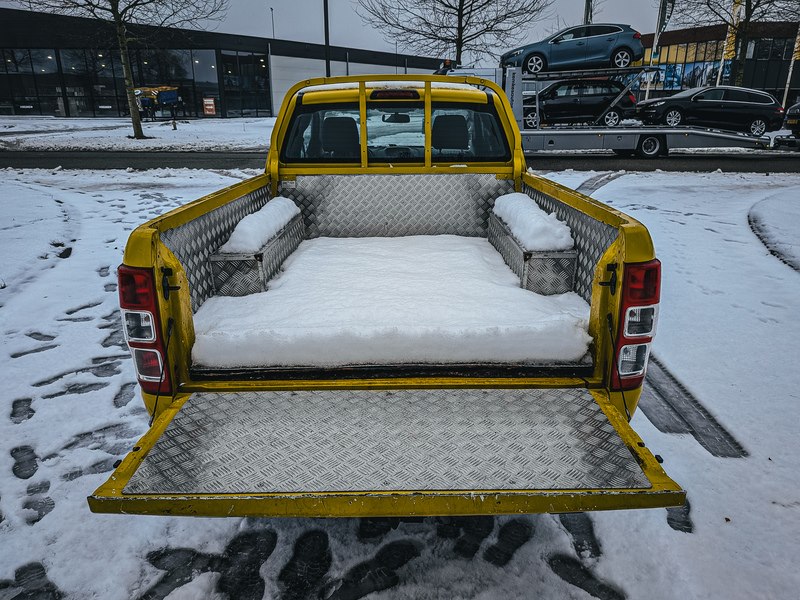 Merk: Ford Product: Gladheidsbestrijding pick-up truck BouwJaar: 2014 Specificaties: Basis kenmerken Kenteken: VJ-956-Z Chassisnummer (VIN) : PGXXMJ2GDD53208 Datum eerste toelating: 13 augustus 2014 Vervaldatum APK: 13 augustus 2026 Afgelezen tellerstand: 208.452 km (RDW logisch) Carrosserie: Pick-up truck Aantal zitplaatsen: 2 Aantal sleutels: 2 (waarvan 1x reservesleutel) Motor, Prestaties & Milieu Brandstof: Diesel Motorcode: QJ2R Aantal cilinders: 3 Cilinderinhoud: 2.198 cm³ Max. vermogen: 110 kW / 150 PK Transmissie: 6 versnellingen, handgeschakeld Topsnelheid: 175 km/h Acceleratie: 11,8 (0-100 km/h) Max. koppel: 375 Nm Brandstofverbruik: 7,9 l/100km (gecombineerd NEDC) Emissiecode: Euro 5 Maten & Gewichten Voertuig lengte: 5.480 mm Voertuig breedte: 1.850 mm Voertuig hoogte: 1.840 mm Wielbasis: 3.220 mm Massa rijklaar: 2.050 kg Max. massa voertuig: 3.200 kg Laadvermogen: 1.250 kg Aanhangwagen geremd: 3.500 kg Aanhangwagen ongeremd: 750 kg Inclusief • Nido DIN-plaat • Aansluitingen voor o.a. zoutstrooier • Volledig ingericht voor gladheidsbestrijding