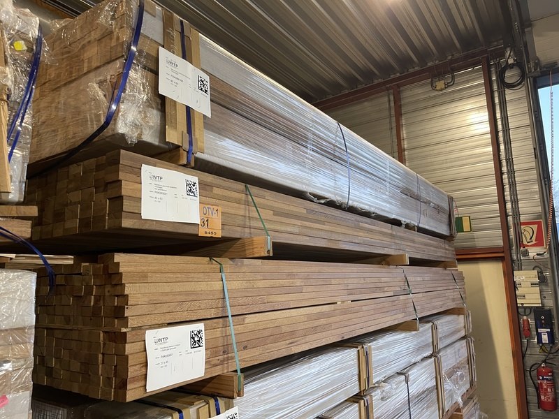 Product: Guyana Teak regels geschaafd gevingerlast Materiaal: Basralocus Afmeting: 40x60mm, lengte 395cm Conditie: nieuw