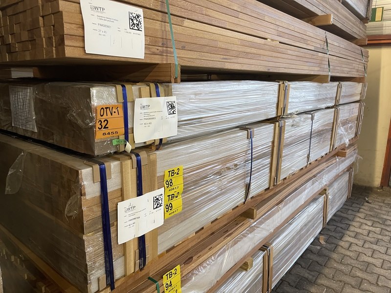 Ca. 85x guyana teak regels geschaafd gevingerlast