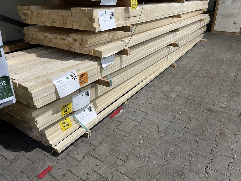 Product: Vuren latten Materiaal: Vuren Afmeting: 32x58mm, lengte 540cm Conditie: nieuw