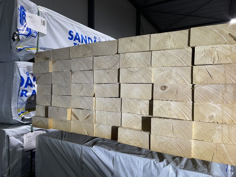 Ca. 49x vuren balken geschaafd, 71x171mm, lengte 420cm