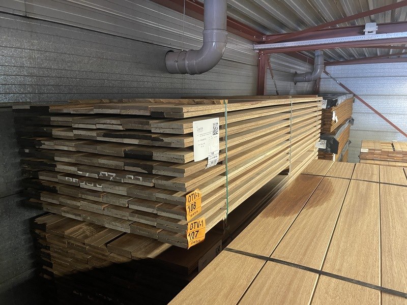 Product: Guyana Teak planken geschaafd Materiaal: Basralocus Afmeting: 16x140mm, lengte 300cm Conditie: nieuw