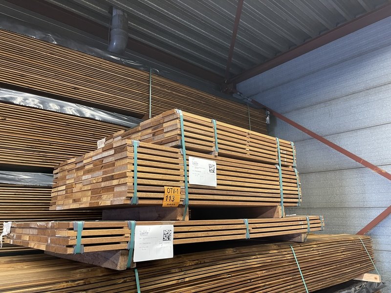 Ca. 134x guyana teak planken geschaafd, 21x120mm, lengte 54/125cm, 80/155cm
