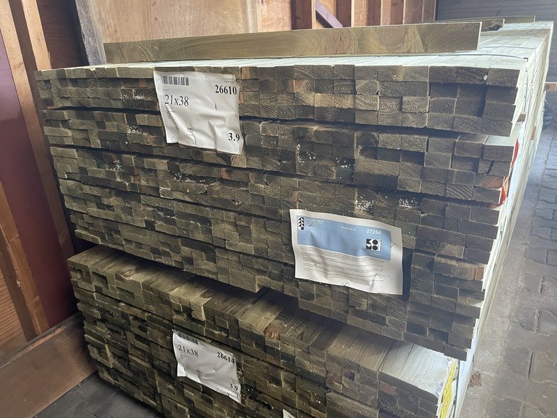 Ca. 600x vuren panlatten geschaafd/geïmpregneerd, 21x36mm, lengte 390cm