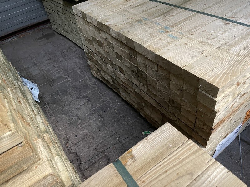 Ca. 192x vuren balken geschaafd/geïmpregneerd, 45x70mm, lengte 300cm