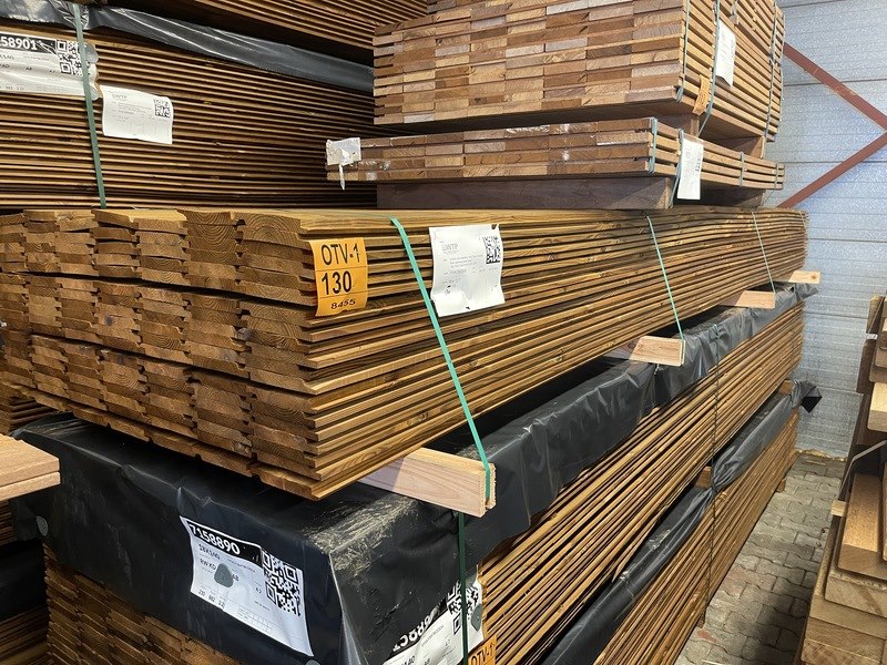 Ca. 130x channelsiding bruin geïmpregneerd, 18x140mm, lengte 420cm