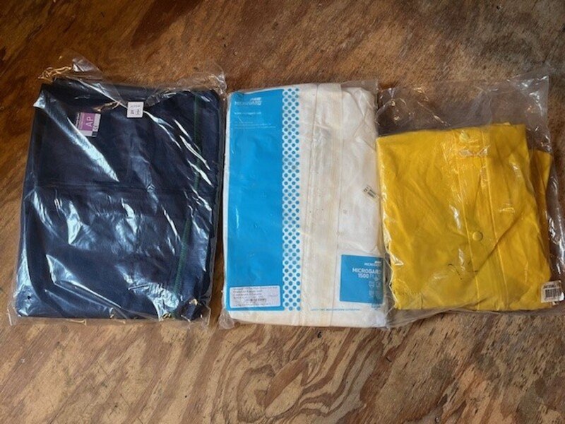 Product: Partij PBM Specificaties: 9x wegwerp overall XL, blauw 10x wegwerp overall XXL, wit 3x regenpak geel 10x veiligheidshesje geel/oranje Ca. 70 paar handschoenen