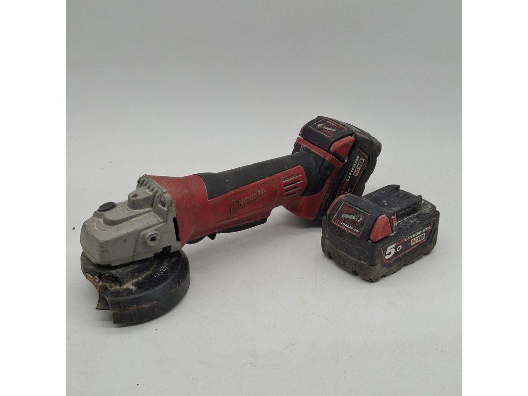 Merk: Milwaukee Product: Accu haakse slijper BouwJaar: 2021 Conditie: gebruikt Specificaties: 18V Diameter 125mm Inclusief 2x accu 18V 5.0Ah Exclusief acculader