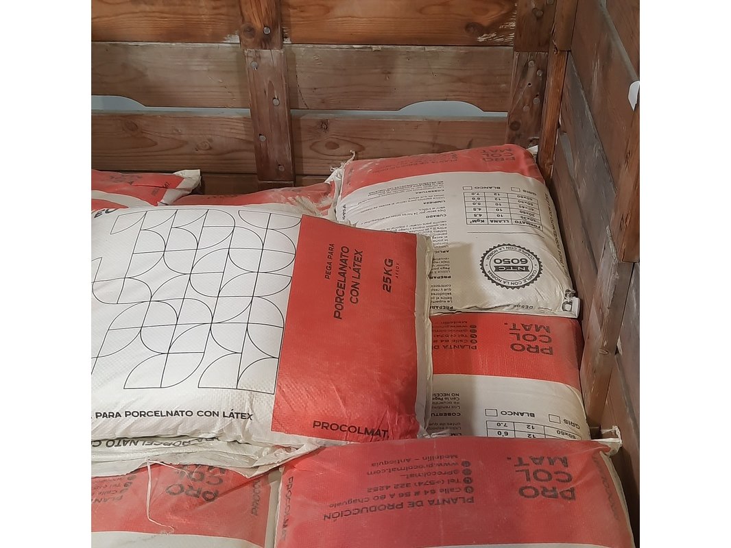 Merk: Procolmat Product: Partij tegellijm Specificaties: Bestaande uit 1x palletkist met zakken van 25 Kg tegellijm. Exclusief palletkist Staat onbekend