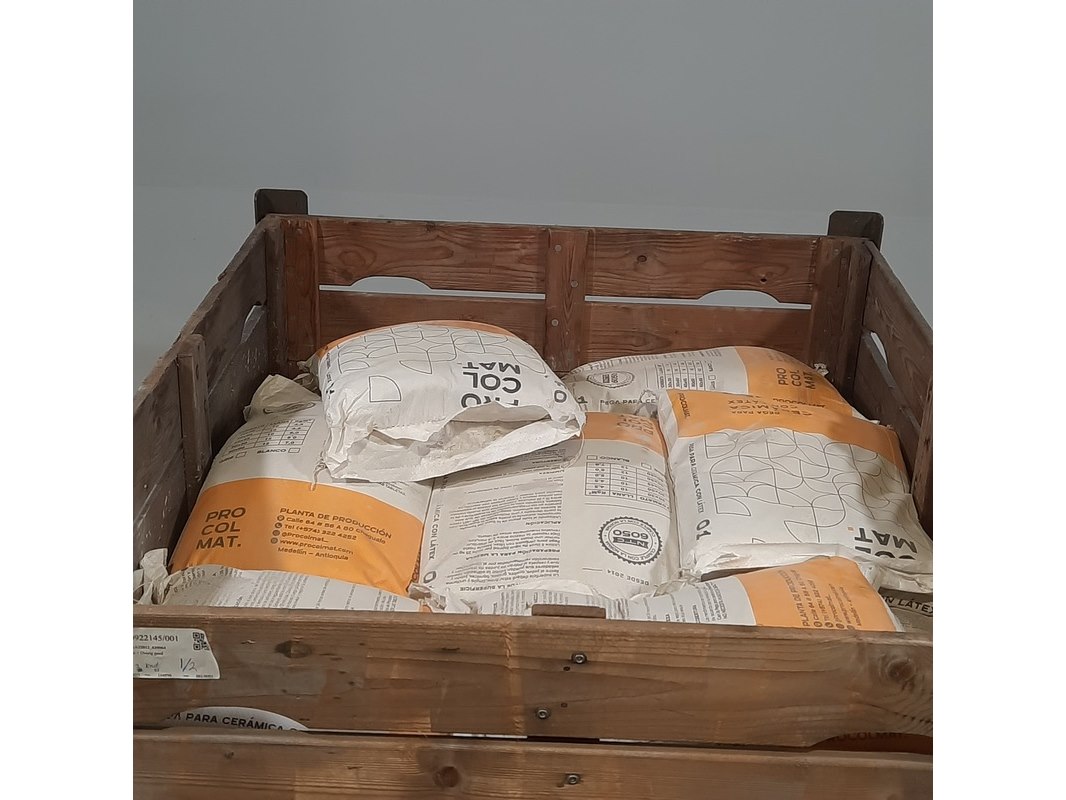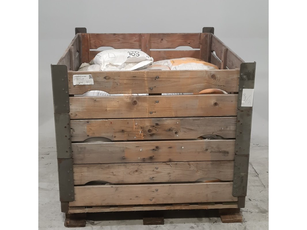 Merk: Procolmat Product: Partij tegellijm Specificaties: Bestaande uit 1x palletkist met zakken van 25 Kg tegellijm. Exclusief palletkist Staat onbekend