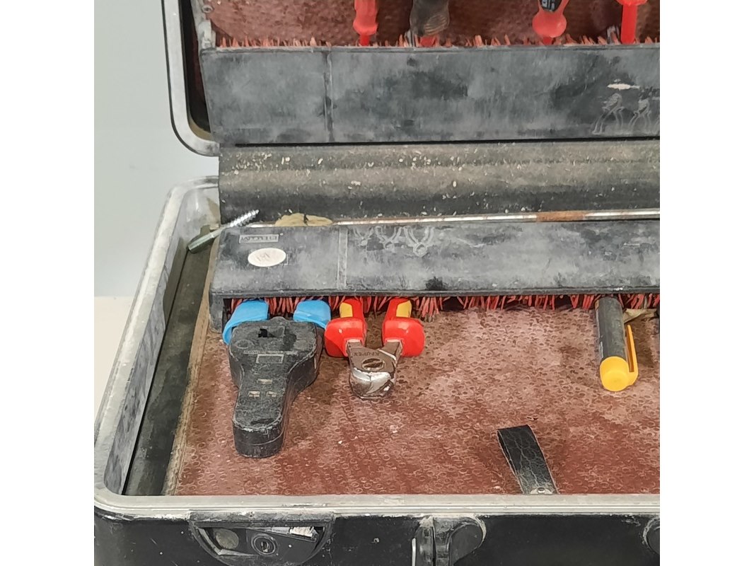 Merk: Parat Product: Gevulde gereedschapskoffer Afmeting: LxB 50x40 cm. Conditie: gebruikt Specificaties: Bestaande uit: tangen, schroevendraaiers en etc Exclusief sleutels