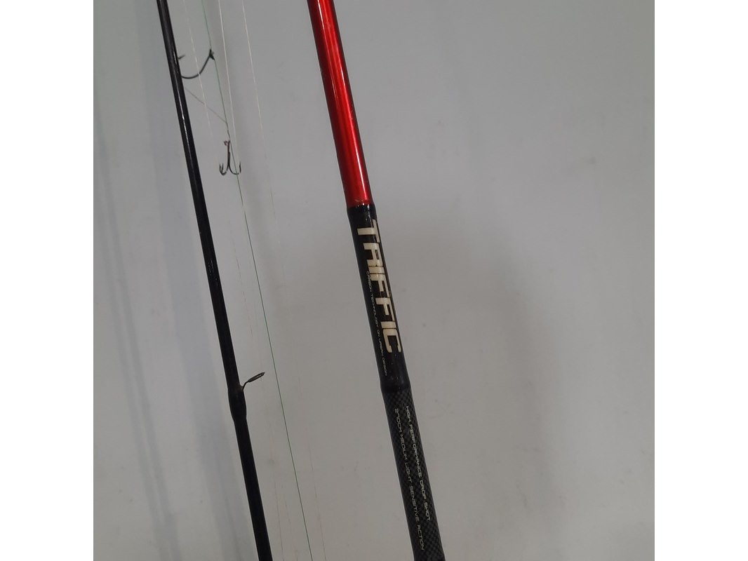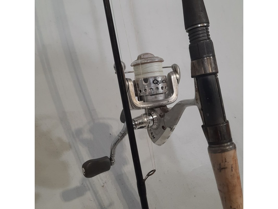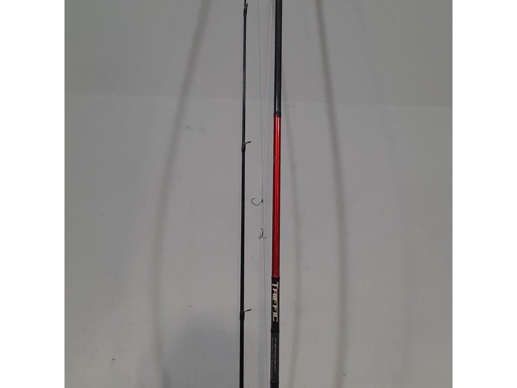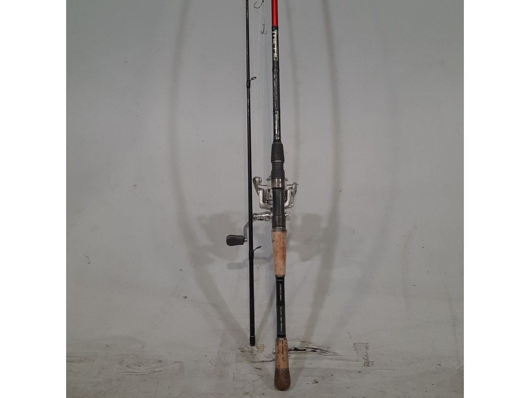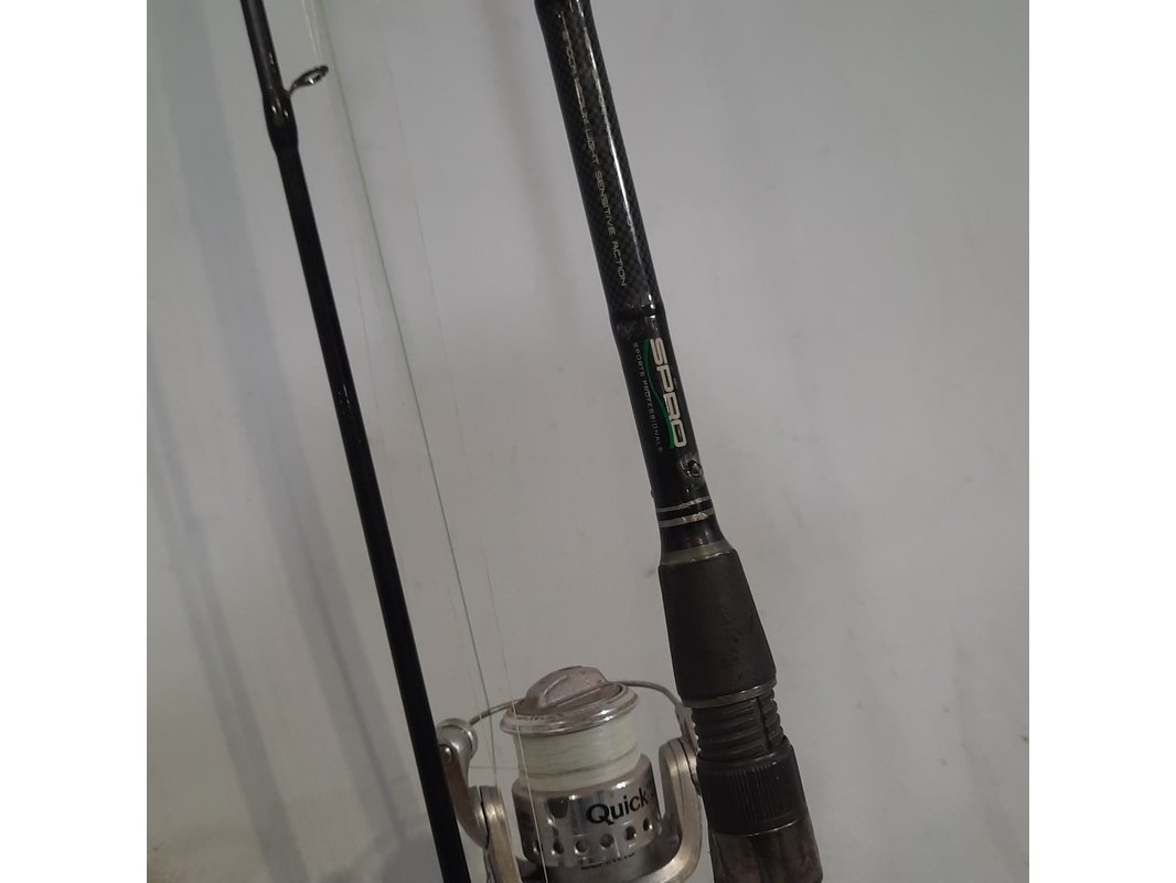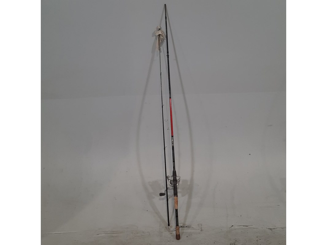 Merk: o.a Spro Product: Werphengel met molen Afmeting: Lengte ca. 270 cm. Conditie: gebruikt Specificaties: Bestaande uit: 1x Molen 1x Hengel, Spro Triffic De hengel en molen hebben diverse beschadigingen