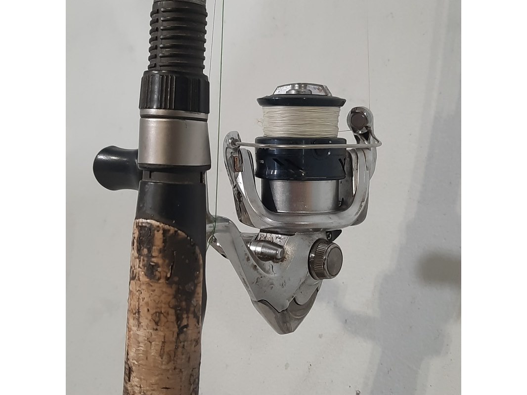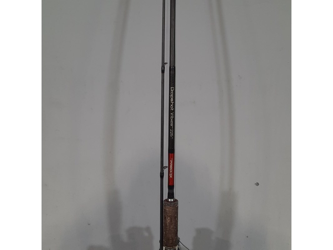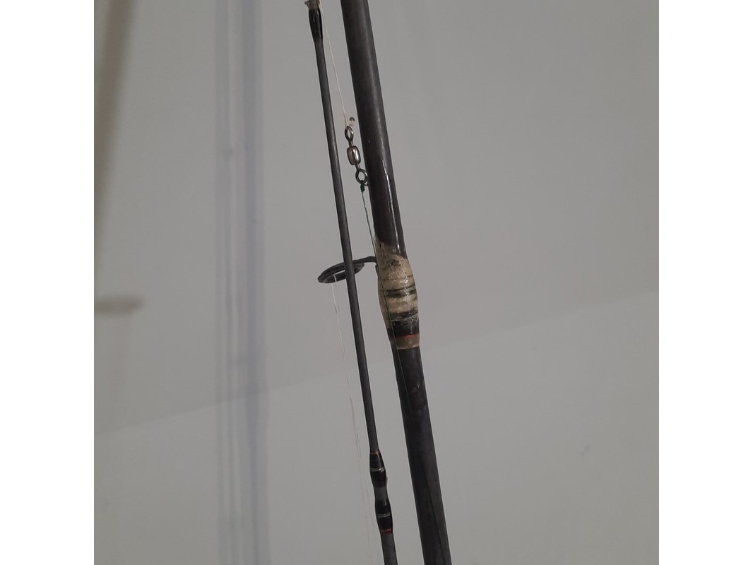 Merk: o.a Predox Product: Werphengel met molen Afmeting: Lengte ca. 225 cm. Conditie: gebruikt Specificaties: Bestaande uit: 1x Molen 1x Hengel, is gerepareerd (zie beschadiging) De hengel en molen hebben diverse beschadigingen