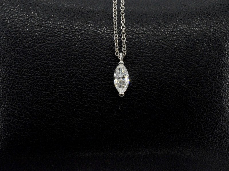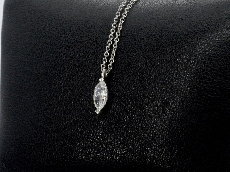 Product: Tiffany & Co - Tiffany & Co ketting met een marquise geslepen diamant van GIA Specificaties: Diamant: Natuurlijk Aantal: 1 stuk Slijpvorm: Marquise geslepen Gewicht (carat): 0.35 carat Kleur: E Zuiverheid: VVS1 Certificaat: GIA Certificaat nummer: 5316998920 Juweel: Halsketting Merk: Tiffany & Co Gewicht: 1.9 gram Afmetingen/lengte: 40 cm Materiaal: 18k goud (750) Conditie: Zo goed als nieuw Verpakking: Luxe sieradendoos Toelichting: De kwaliteit is overgenomen van het rapport behorend bij item. De waardebepaling is een beoordeling van een gecertificeerde diamantair, gebaseerd op consumentenprijzen. Consumentenprijs: € 7.040,-