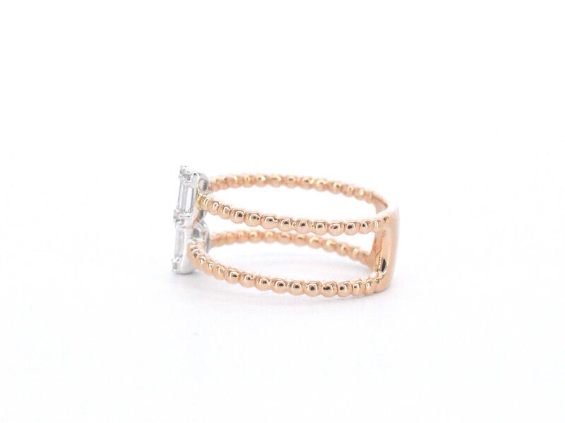 Product: Rosegouden ring met diamanten gezet Specificaties: Diamant: Natuurlijk Slijpvorm: Briljant geslepen en baguette geslepen Gewicht (carat): 0.25 carat Kleur: F-G Zuiverheid: VS Slijpkwaliteit: Zeer mooi Juweel: Ring Gewicht: 4.9 gram Ringmaat (op maat gemaakt*): 53 (17 mm) Materiaal: 18K goud (750) Conditie: Nieuw Verpakking: Luxe sieradendoos Toelichting: De kwaliteit is overgenomen van het rapport behorend bij item. De waardebepaling is een beoordeling van een gecertificeerde diamantair, gebaseerd op consumentenprijzen. Consumentenprijs: € 4.130,-