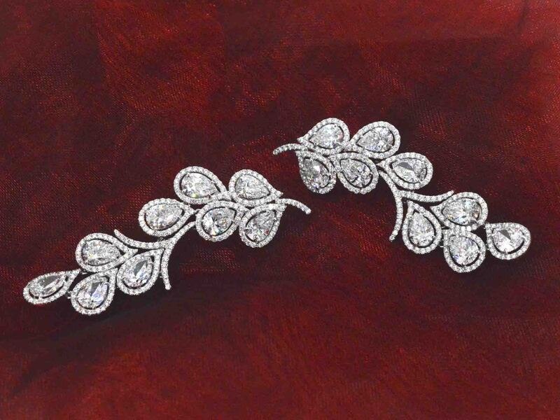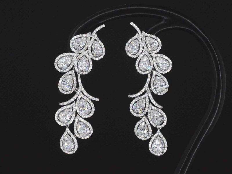 Product: Exclusieve handgemaakte oorsieraden bezet met diamanten Specificaties: Diamant: Natuurlijk Aantal: 18 stuks Slijpvorm: Peer geslepen Gewicht (carat): 10.00 carat Kleur: F Zuiverheid: VVS-zuiver Slijpkwaliteit: Excellent Diamant (secundair): Diamanten Aantal diamanten: 430 stuks Slijpvorm: Briljant geslepen Gewicht (carat): 3.30 carat Kleur: F Zuiverheid: VVS-zuiver Slijpkwaliteit: Excellent Juweel: Oorbellen Gewicht: 12.1 gram Materiaal: 18k goud (750) Conditie: Zo goed als nieuw Verpakking: Luxe sieradendoos Toelichting: De kwaliteit is overgenomen van het rapport behorend bij item. De waardebepaling is een beoordeling van een gecertificeerde diamantair, gebaseerd op consumentenprijzen. Extra informatie: Bijzonderheid: Deze Zeer belangrijke handgemaakte oorsieraden, vervaardigd uit 18 karaats witgoud zijn bezet met uitzonderlijk hoge kwaliteit Briljant geslepen diamanten. Dit sieraad is zeer geschikt als investerings object. Consumentenprijs: € 140.000,-