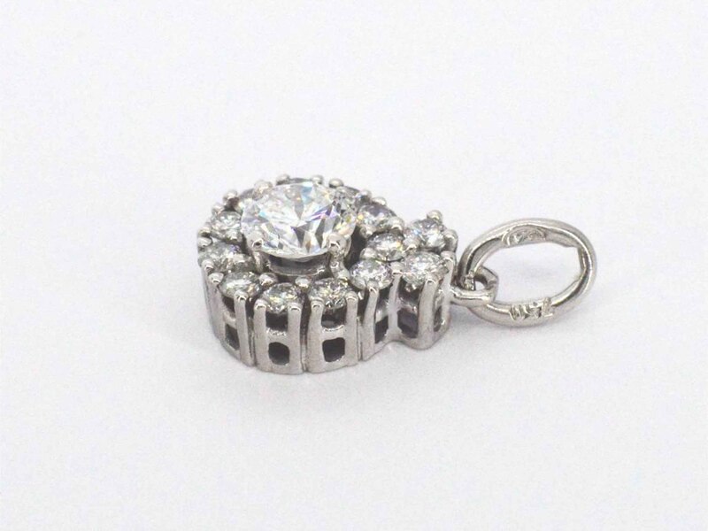 Product: Entourage hanger met natuurlijke diamanten Specificaties: Diamant: Natuurlijk Aantal: 1 stuk Slijpvorm: Briljant geslepen Gewicht (carat): 0.60 carat Kleur: D Zuiverheid: VVS Slijpkwaliteit: Zeer mooi Diamant (secundair): Diamanten Aantal diamanten: 11 stuks Slijpvorm: Briljant geslepen Gewicht (carat): 0.25 carat Kleur: F-G Zuiverheid: VS Juweel: Hanger (excl. ketting) Gewicht: 2 gram Materiaal: 18k goud (750) Conditie: Nieuw Verpakking: Luxe sieradendoos Toelichting: De kwaliteit is overgenomen van het rapport behorend bij item. De waardebepaling is een beoordeling van een gecertificeerde diamantair, gebaseerd op consumentenprijzen. Consumentenprijs: € 12.250,-