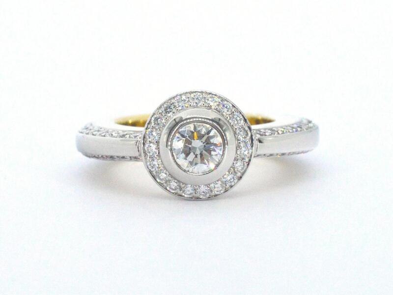 Product: Bi-colour design ring met 100 diamanten Specificaties: Diamant: Natuurlijk Aantal: 1 stuk Slijpvorm: Briljant geslepen Gewicht (carat): 0.55 carat Kleur: F Zuiverheid: VVS Slijpkwaliteit: Uitstekend Diamant (secundair): Diamant Aantal diamanten: 99 stuks Slijpvorm: Briljant geslepen Gewicht (carat): 1.00 carat Kleur: F Zuiverheid: VVS Slijpkwaliteit: Zeer mooi Juweel: Ring Gewicht: 11.9 gram Ringmaat (op maat gemaakt*): 51.5 (16.30 mm) Materiaal: 18k goud (750) Conditie: Nieuw Toelichting: De kwaliteit is overgenomen van het rapport behorend bij item. De waardebepaling is een beoordeling van een gecertificeerde diamantair, gebaseerd op consumentenprijzen. Consumentenprijs: € 22.000,-