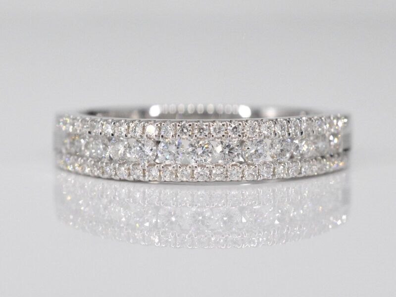 Product: Witgouden ring met diamanten Specificaties: Diamant: Natuurlijk Slijpvorm: Briljant geslepen Gewicht (carat): 0.50 carat Kleur: F-G Zuiverheid: VS Slijpkwaliteit: Zeer mooi Juweel: Ring Gewicht: 3 gram Ringmaat (op maat gemaakt*): 17 (53 mm) Materiaal: 18K goud (750) Conditie: Nieuw Verpakking: Luxe sieradendoos Toelichting: De kwaliteit is overgenomen van het rapport behorend bij item. De waardebepaling is een beoordeling van een gecertificeerde diamantair, gebaseerd op consumentenprijzen. Consumentenprijs: € 4.235,-