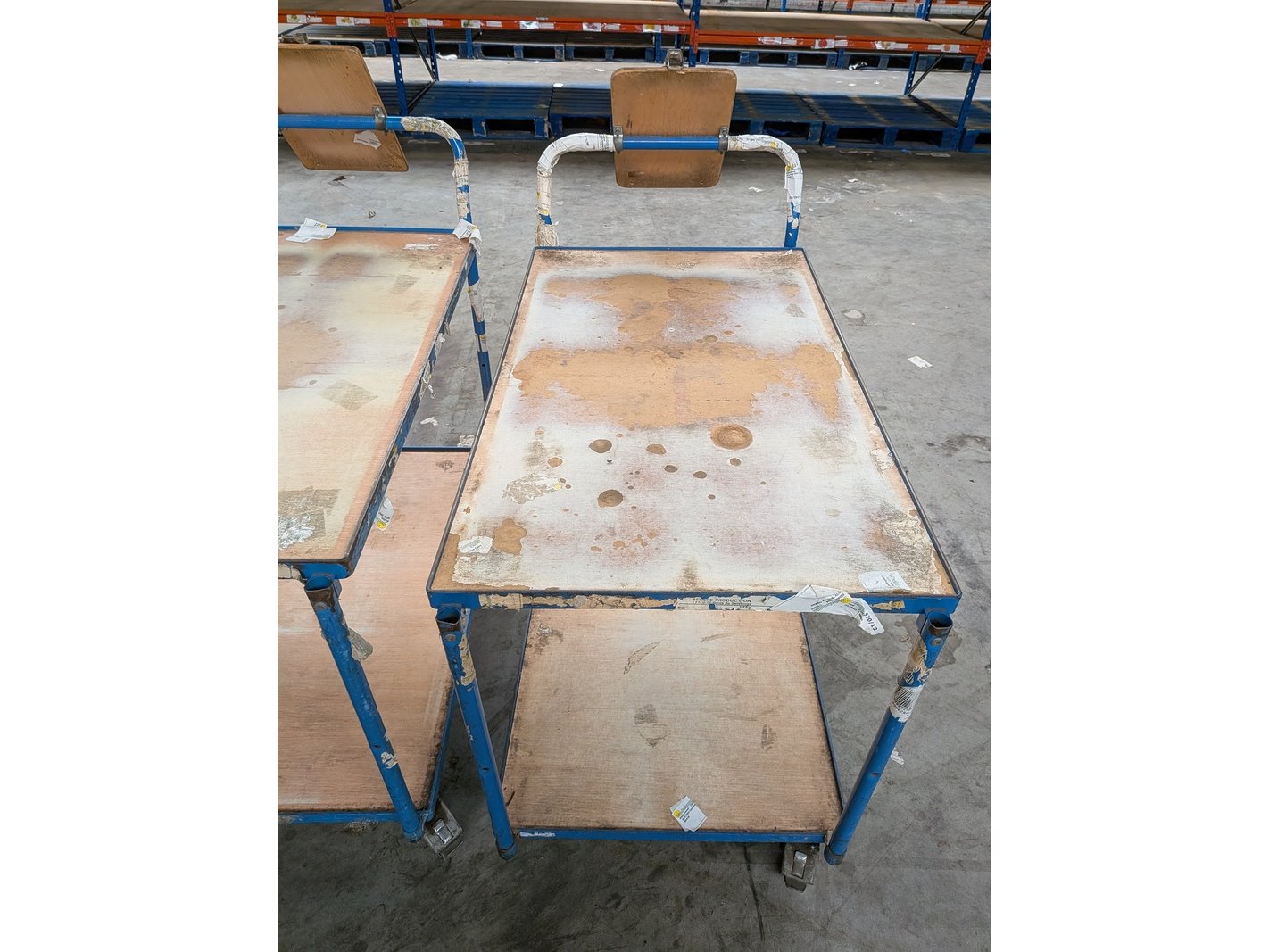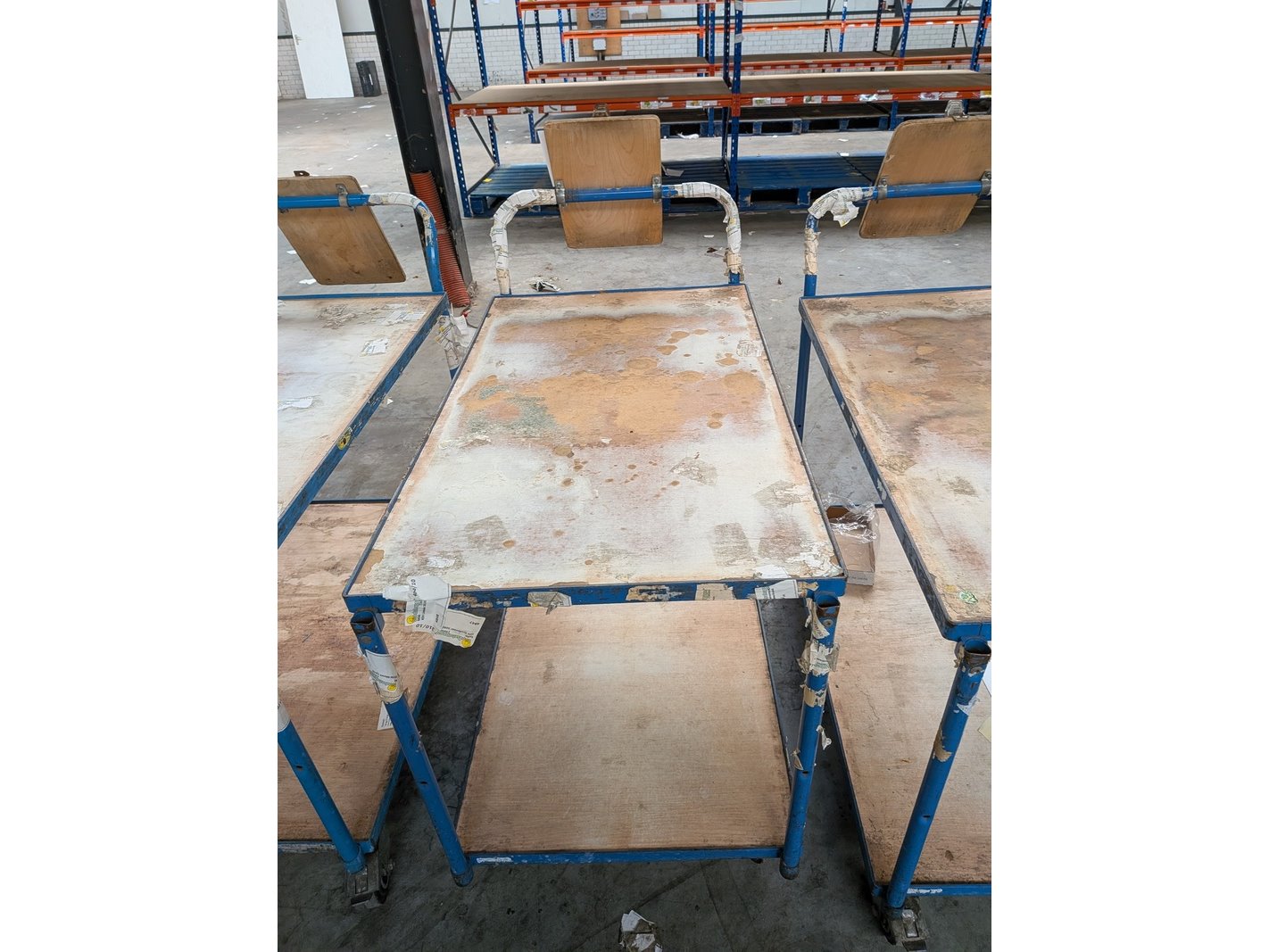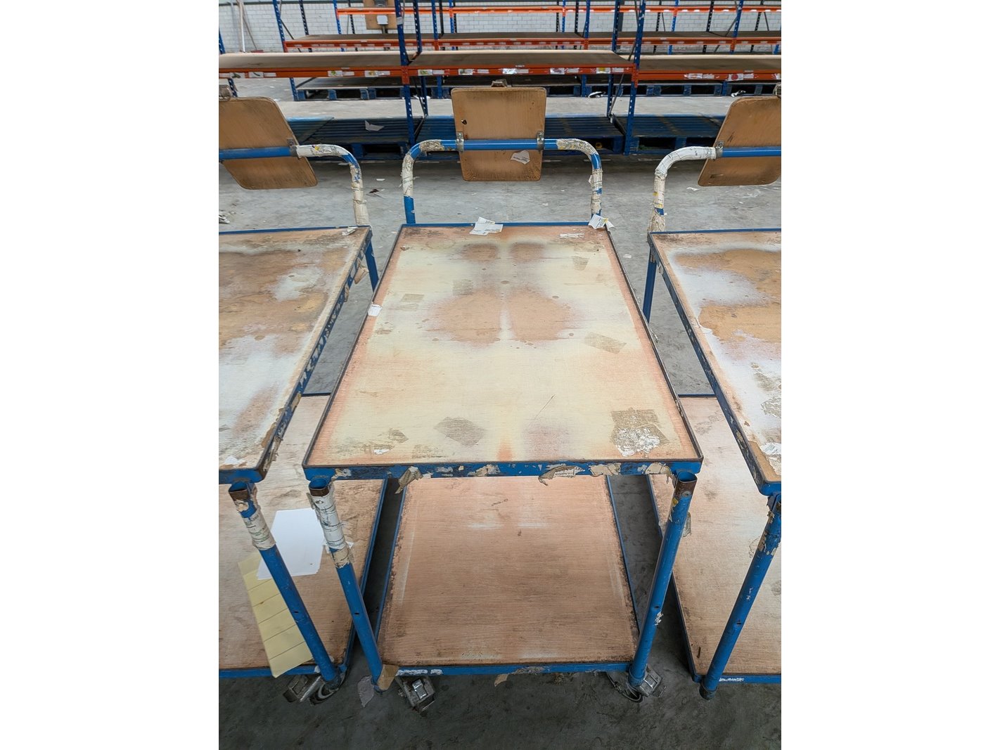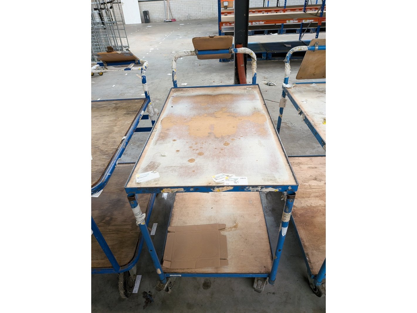 Product: Magazijnwagen Materiaal: Metaal / hout Specificaties: Waarvan 6x afmeting (lxbxh) ca. 114 x 61 x 104 cm