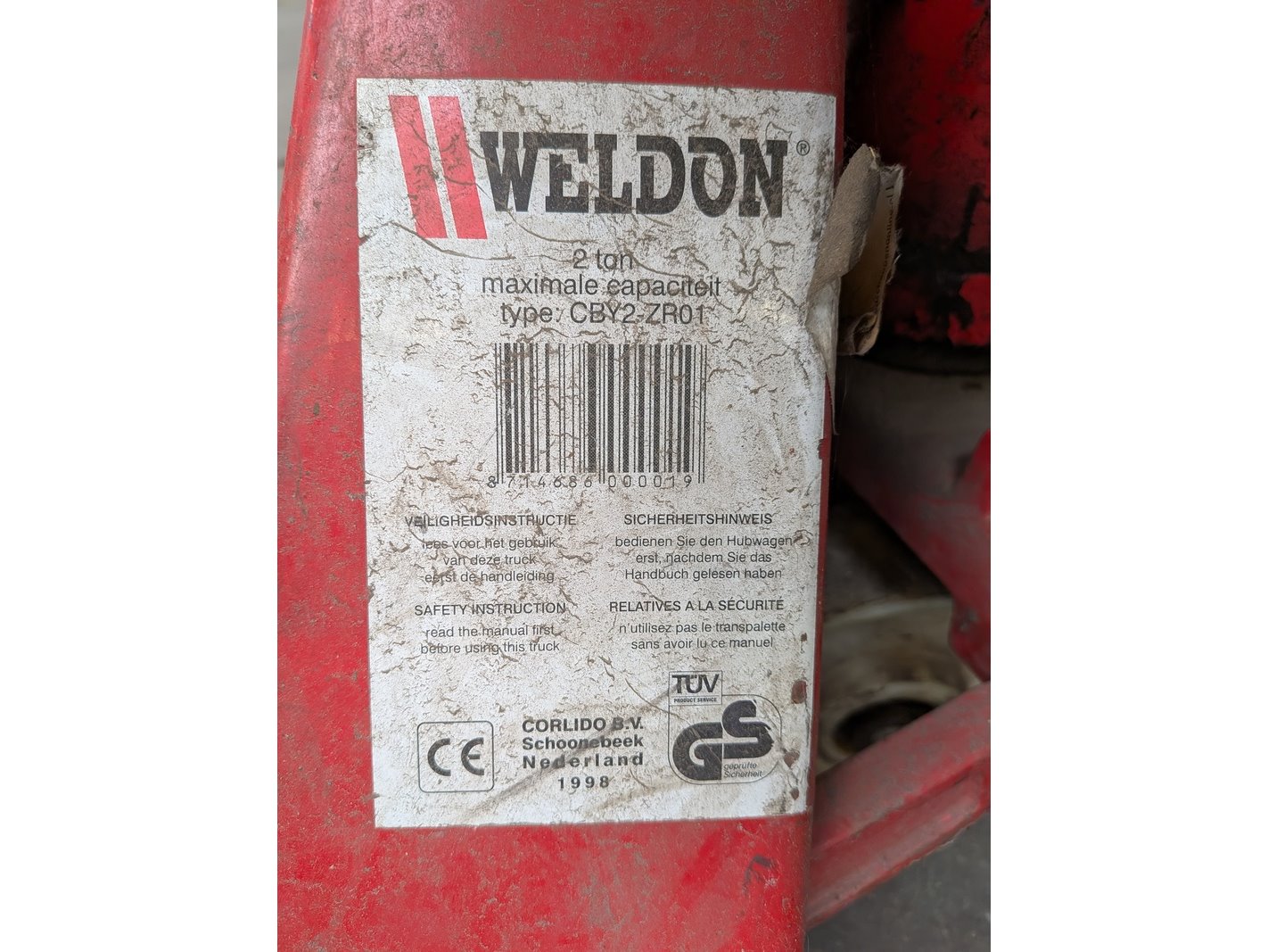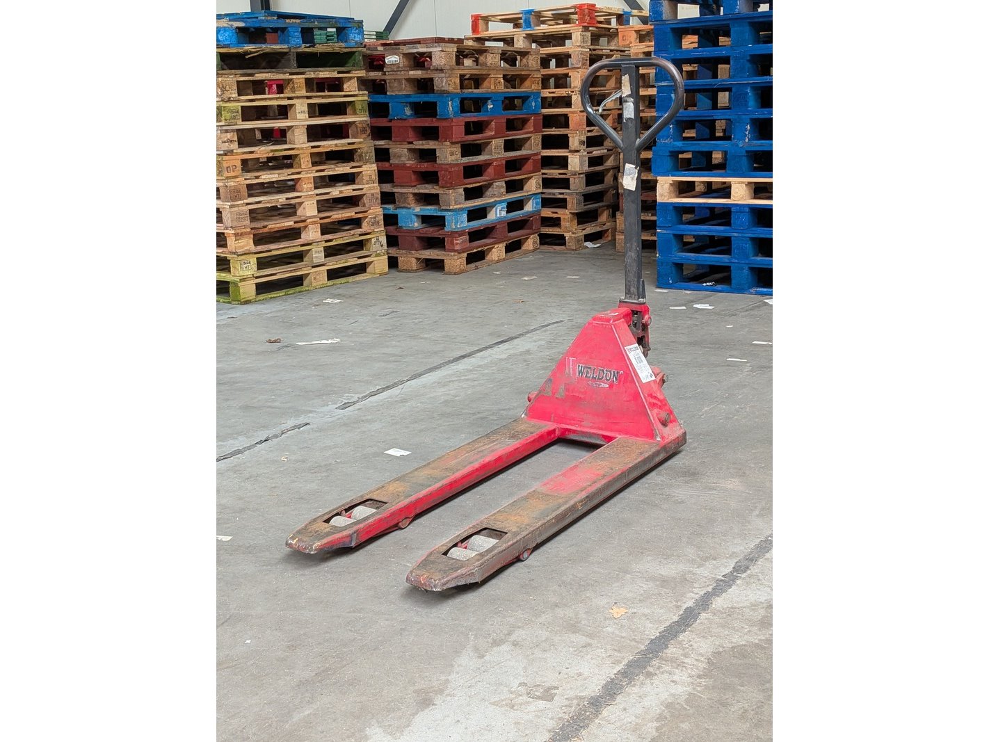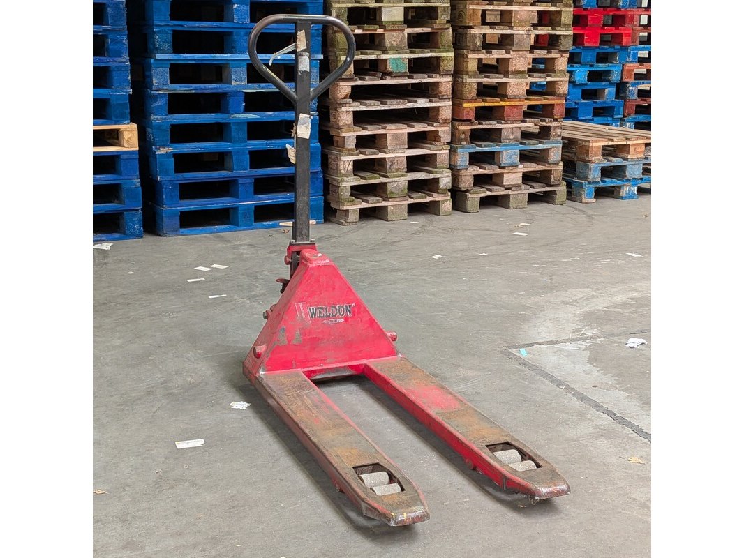 Merk: Weldon Product: Palletwagen Afmeting: max. 2000kg Specificaties: lepellengte ca. 110 cm