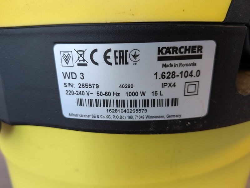 Merk: Kärcher Product: Bouwstofzuiger Specificaties: 230V, 1000W, exclusief zuigstang
