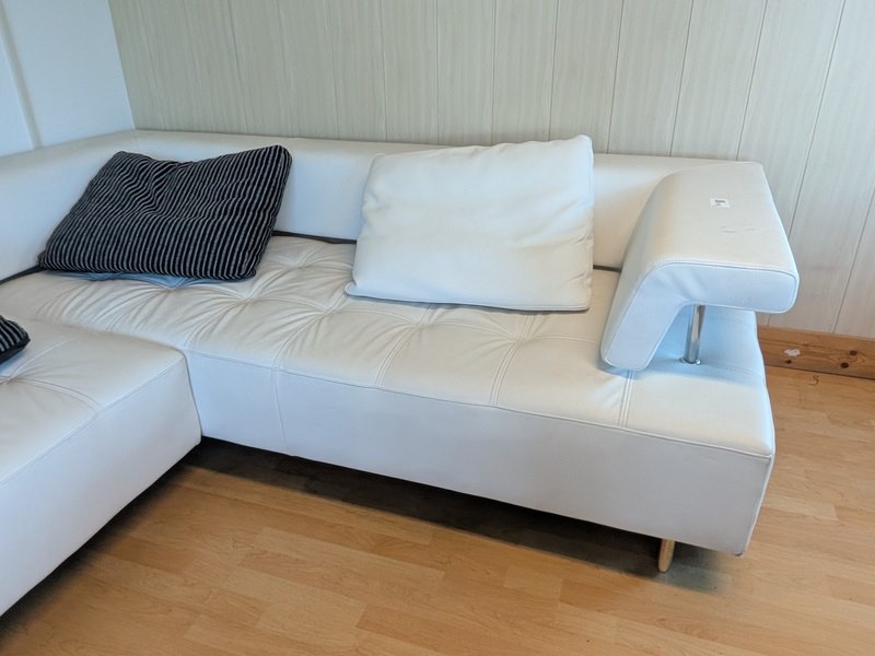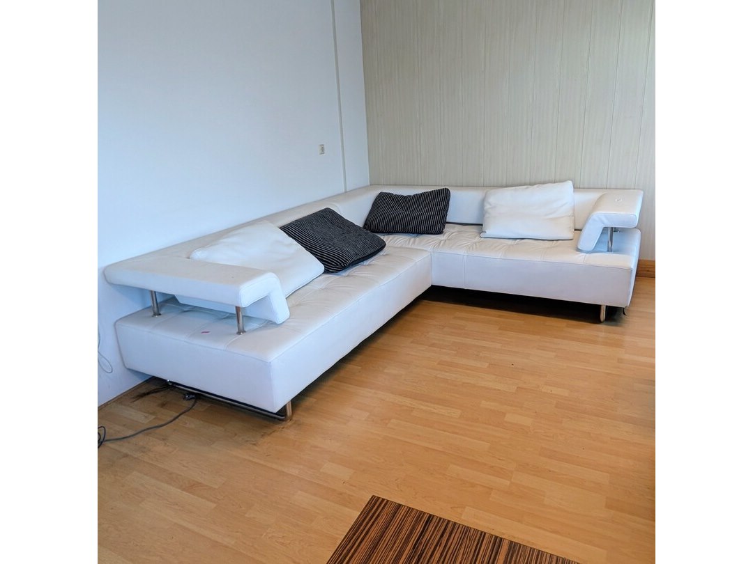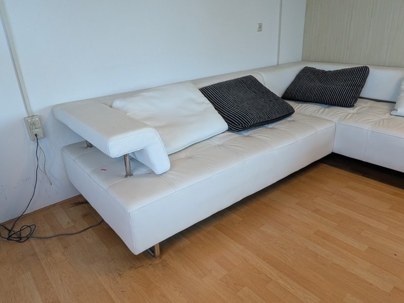 Product: Hoekbank Afmeting: (lxbxh) ca. 288 x 235 x 73 cm Specificaties: zithoogte ca. 41 cm Let op! De kavel bevindt zich op een verdieping alleen toegankelijk via trap