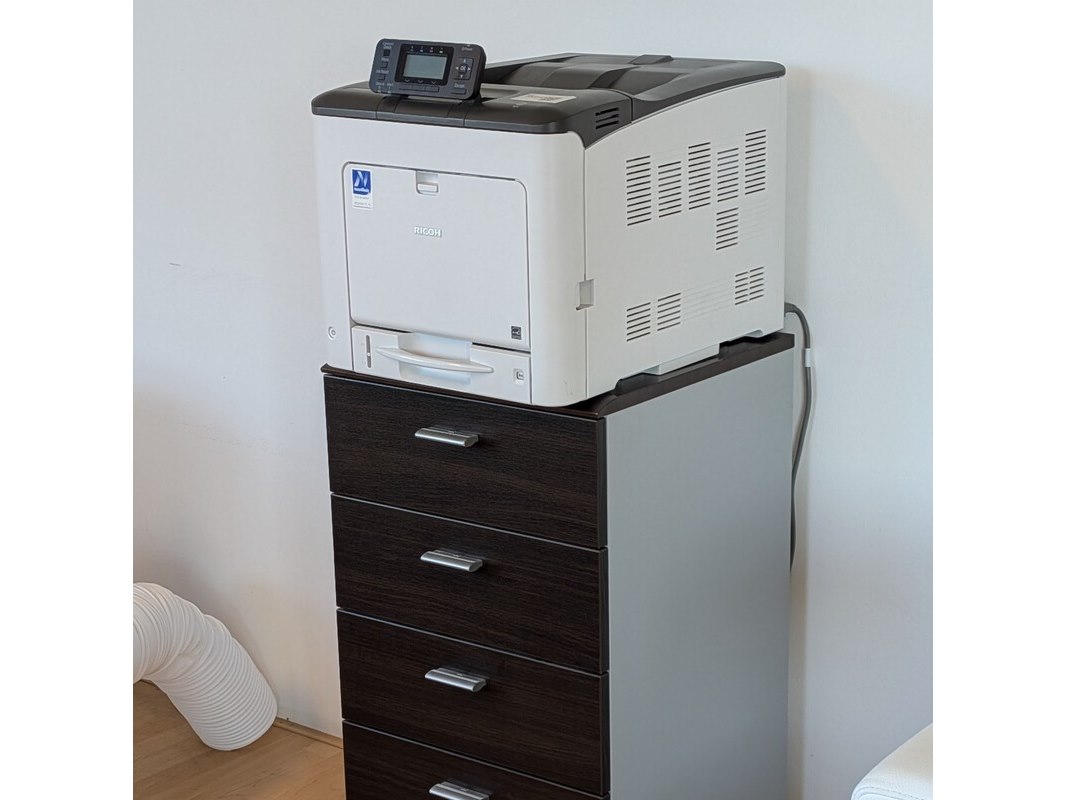 Merk: Ricoh Product: Printer met ladekast Specificaties: 230V, 1200W Let op! De kavel bevindt zich op een verdieping alleen toegankelijk via trap